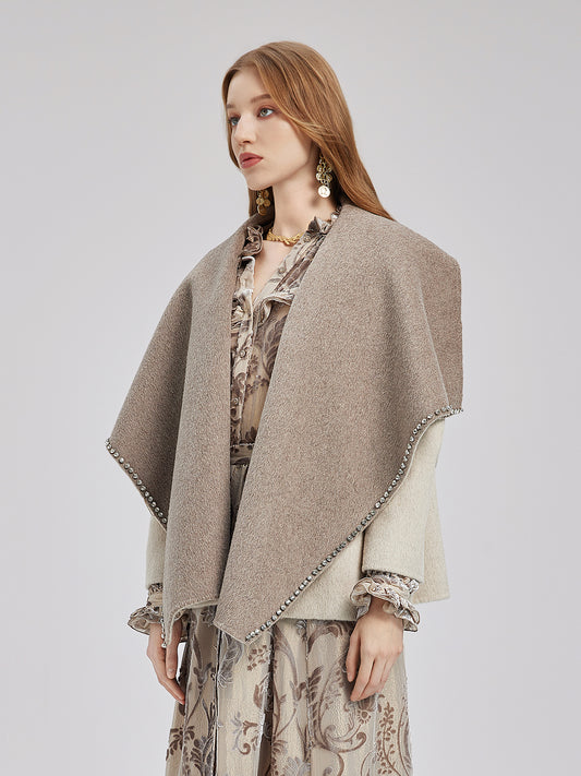 Rhinestone Embellished Couture Cashmere Cape Jacket