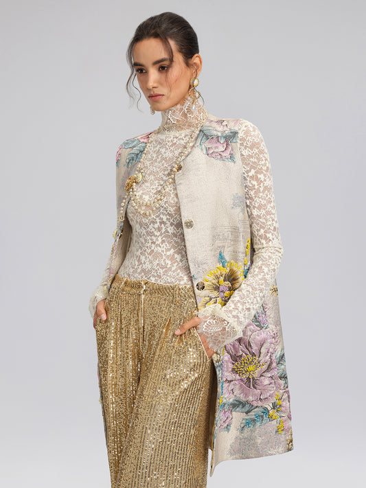 Hand-Sewn Jacquard Floral Beaded Vest