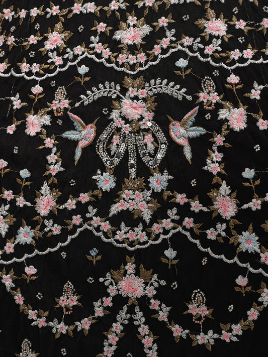 Embroidered Floral Ruffled Tulle Dress