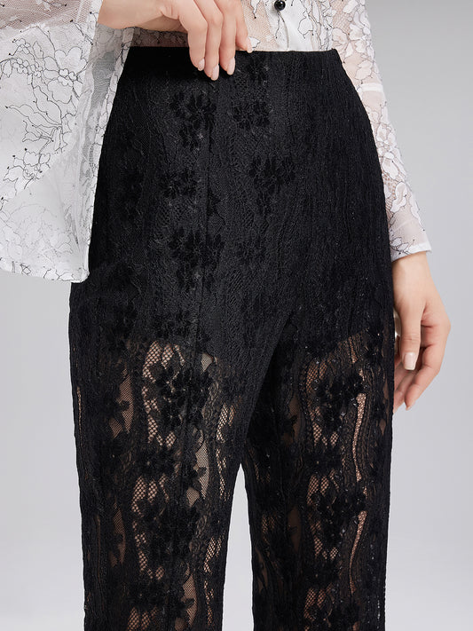 Lace Cutout Flared Pants