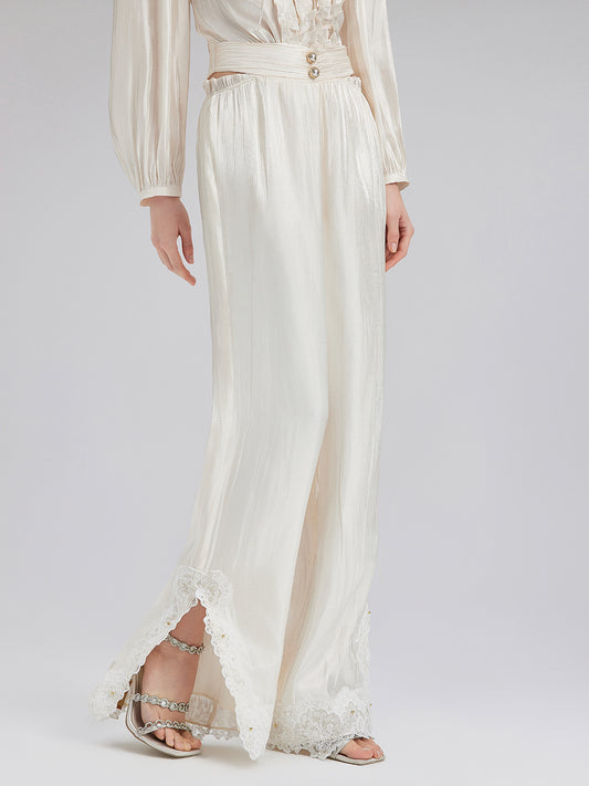 French Lace Patchwork Jacquard Satin Pants