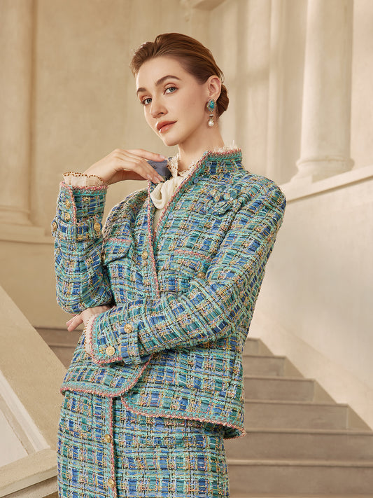 Multicolor Tweed Hand-Sewn Braid Trim Jacket (Matching Scrunchie Included)