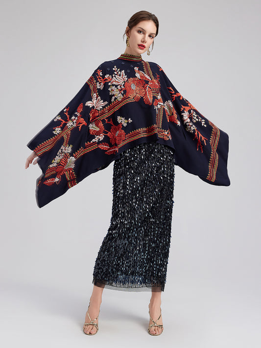 Magpie Embroidered Chinese-Inspired Cape Blouses
