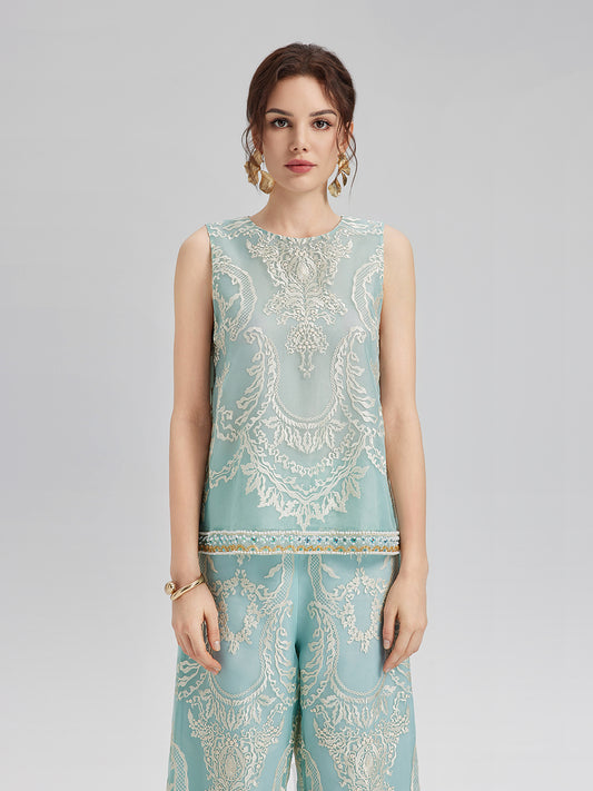 Luxe Sensual Sheer Silk Embroidered Blouse