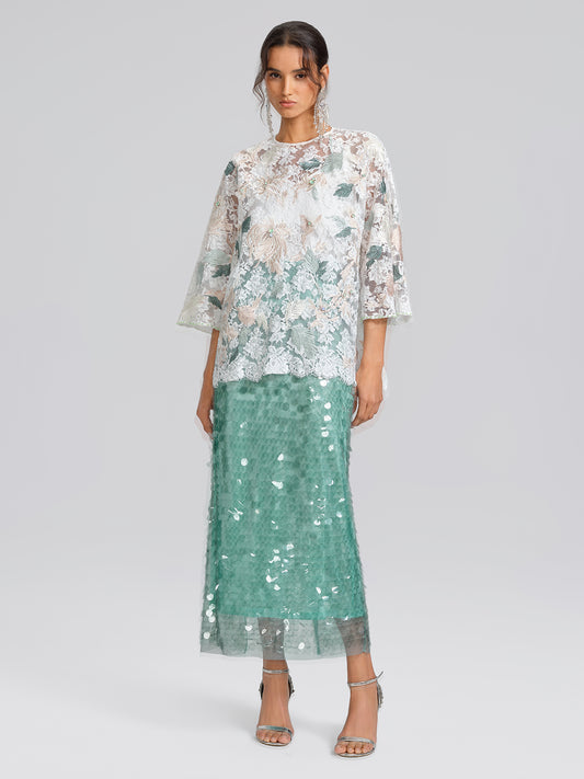 Elegant 3D Lace Dyed Silk Skirt