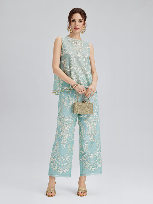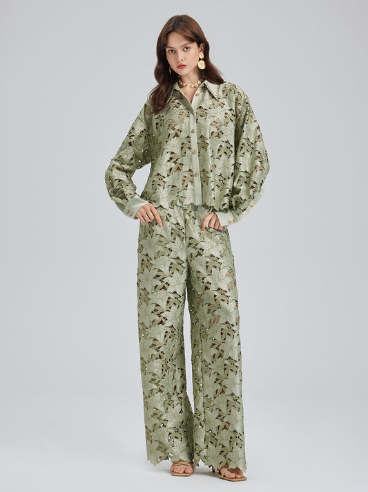 Lace Appliqué Jewel-like Buttons Emerald Top