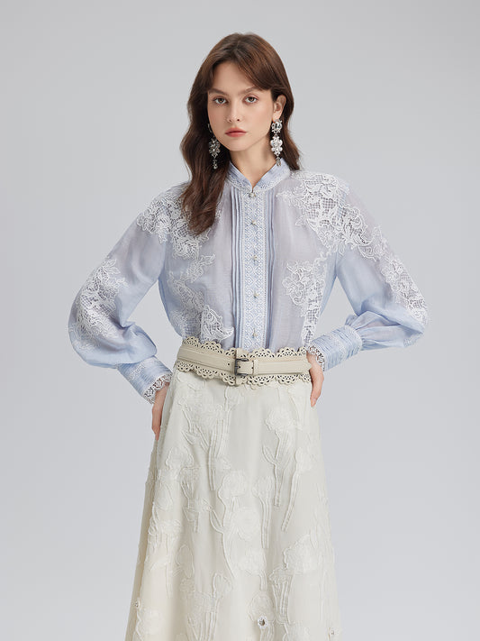 Handcrafted Patchwork Linen-Blend Lace Shirt