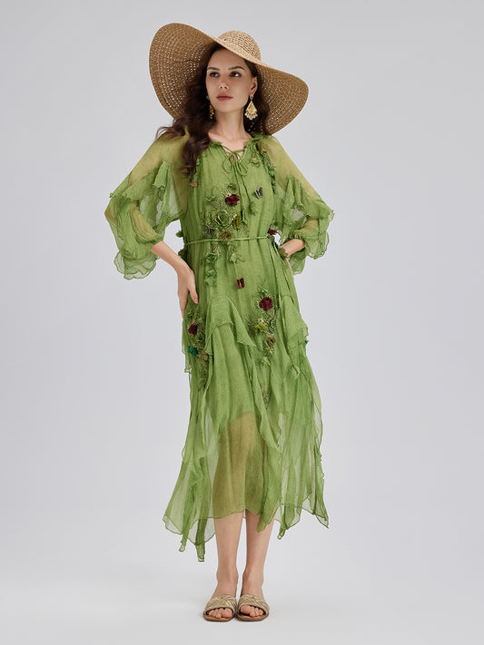 Silk Hand-Dyed 3D Floral Maxi Dress