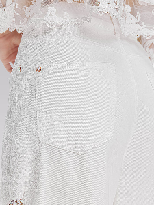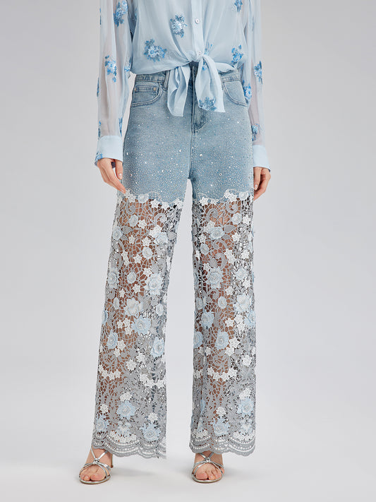Lace Appliqué Jewel-like Buttons Emerald Top