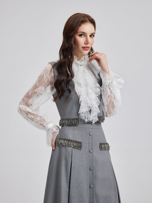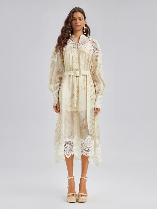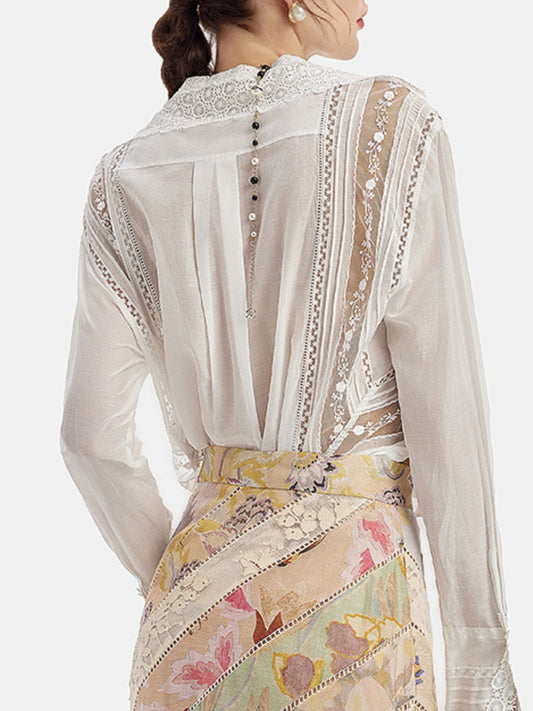 Handcrafted Patchwork Linen-Blend Lace Shirt