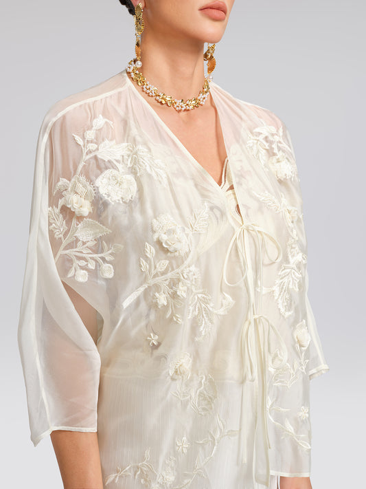 Embroidered Beaded Organza Batwing Shawl