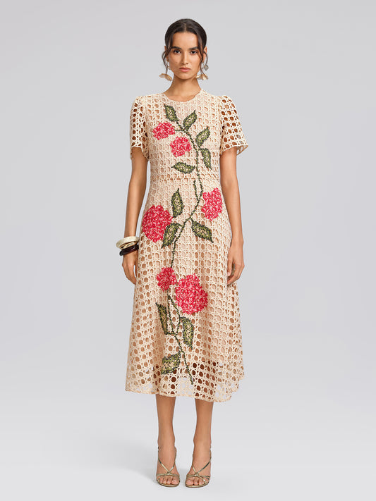 Embroidered Cutout A Line Dress