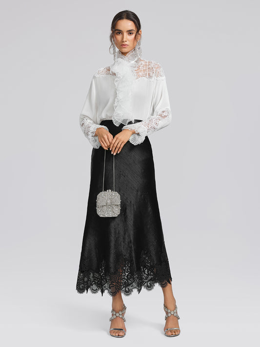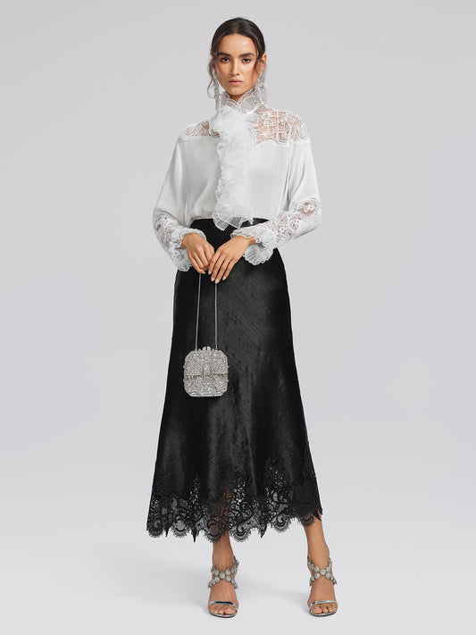 Stretch-Waist Lace Panel Acetate Mermaid Skirt
