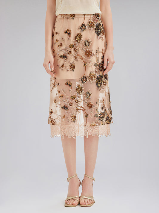 Floral Sequin Embroidered Knit Skirt