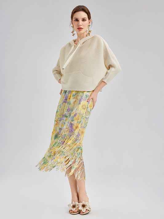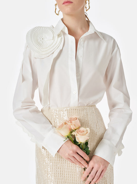 Pleated Lace-Ruffle Trim Bow-Tie Blouse