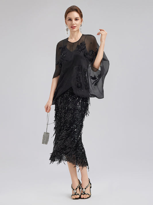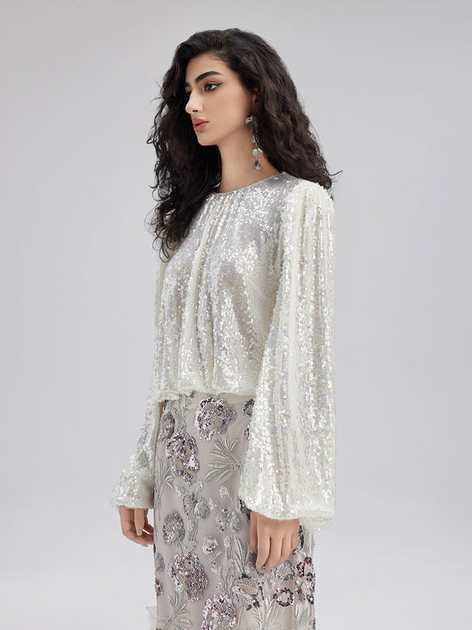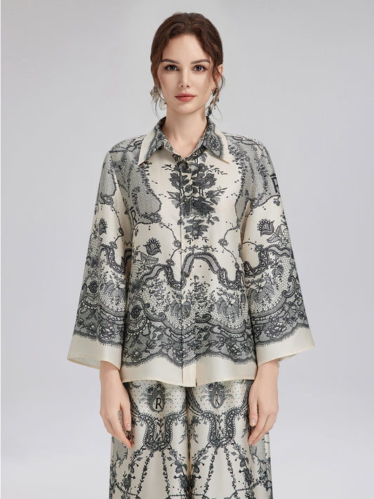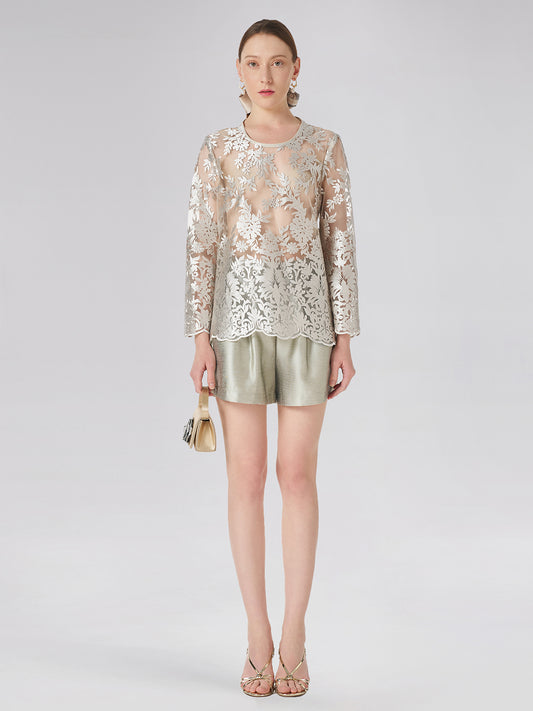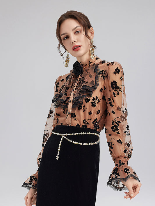 Luxe Sensual Sheer Silk Embroidered Blouse