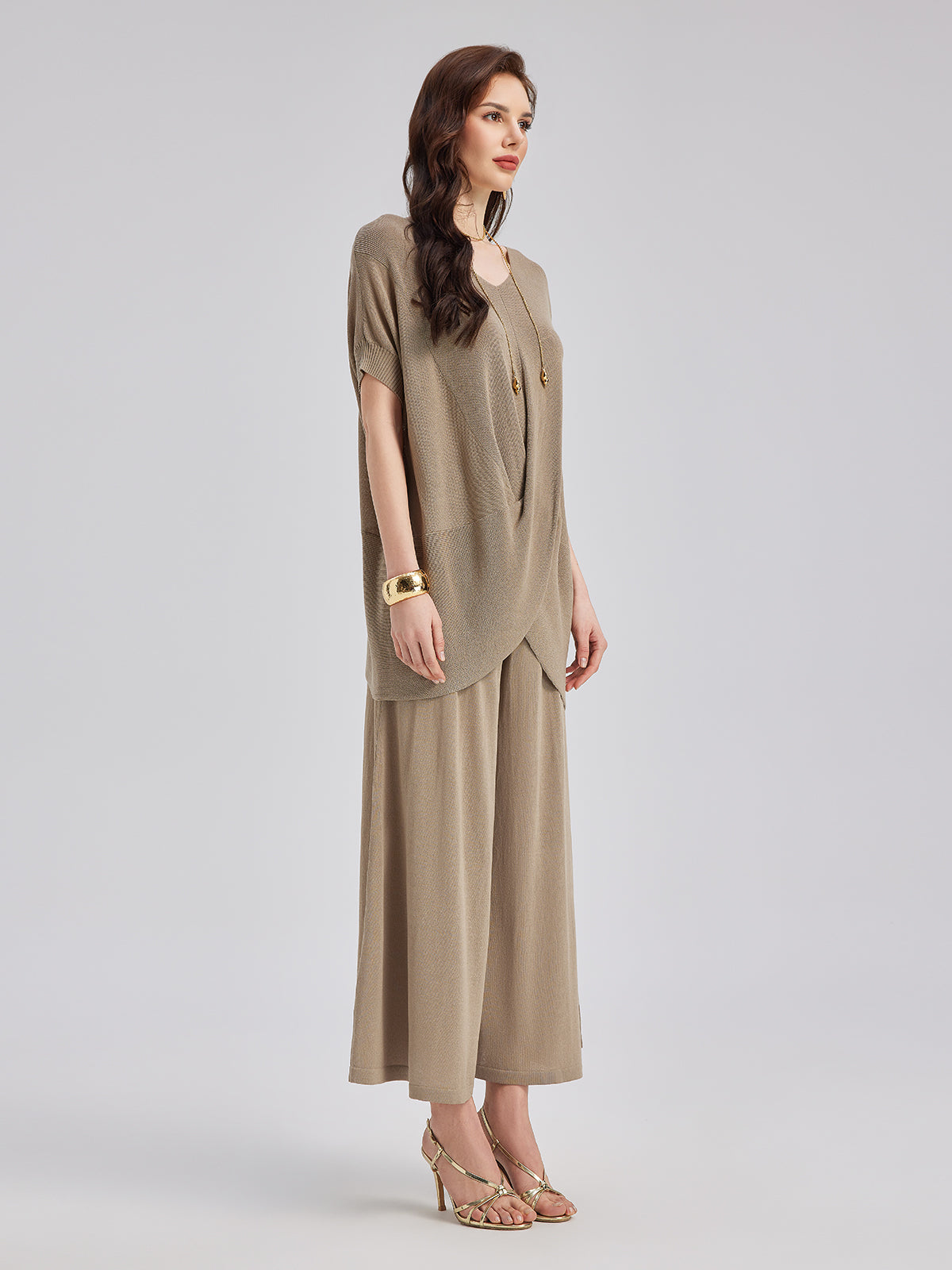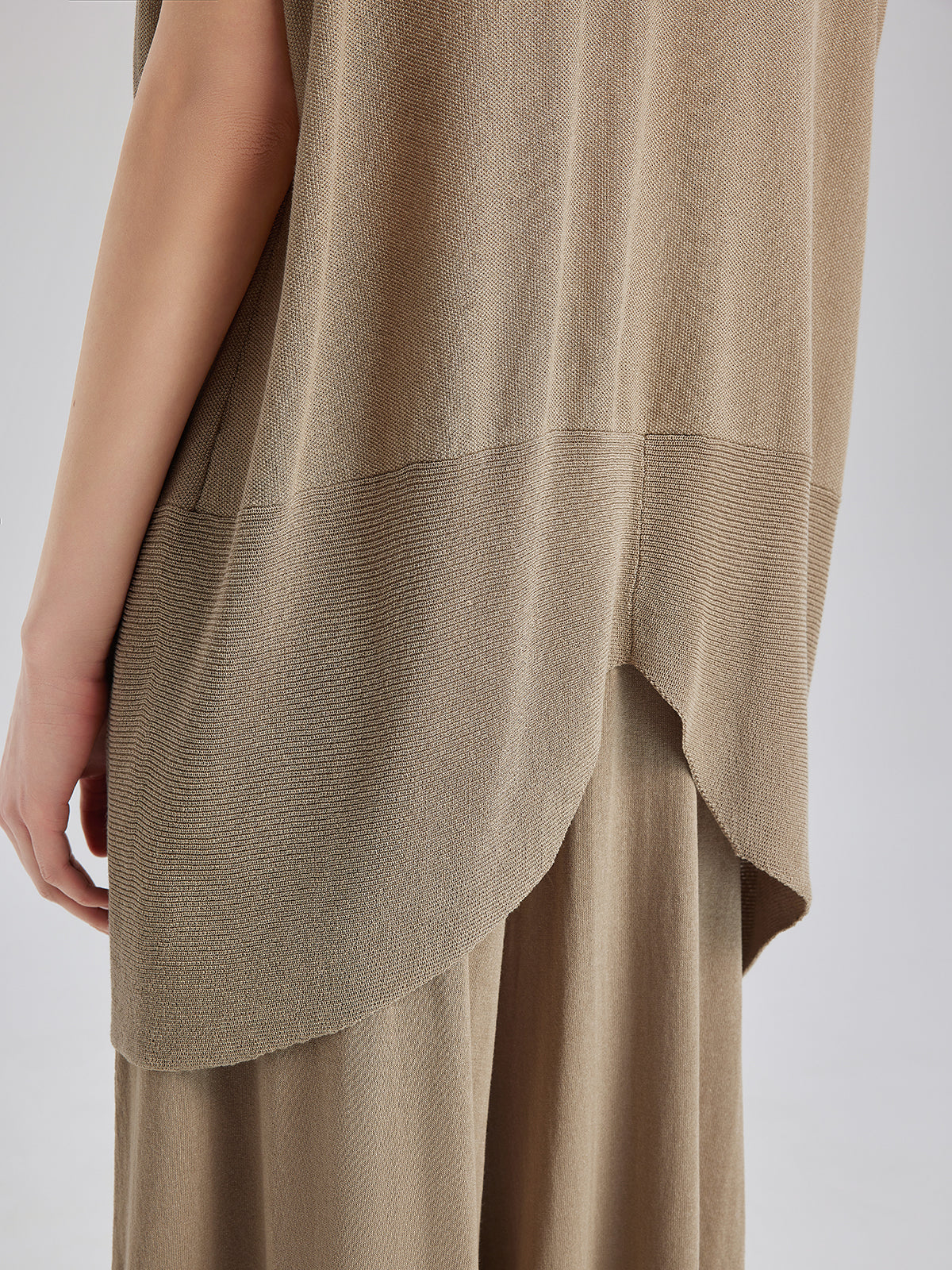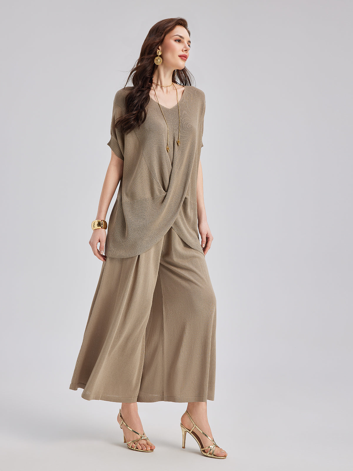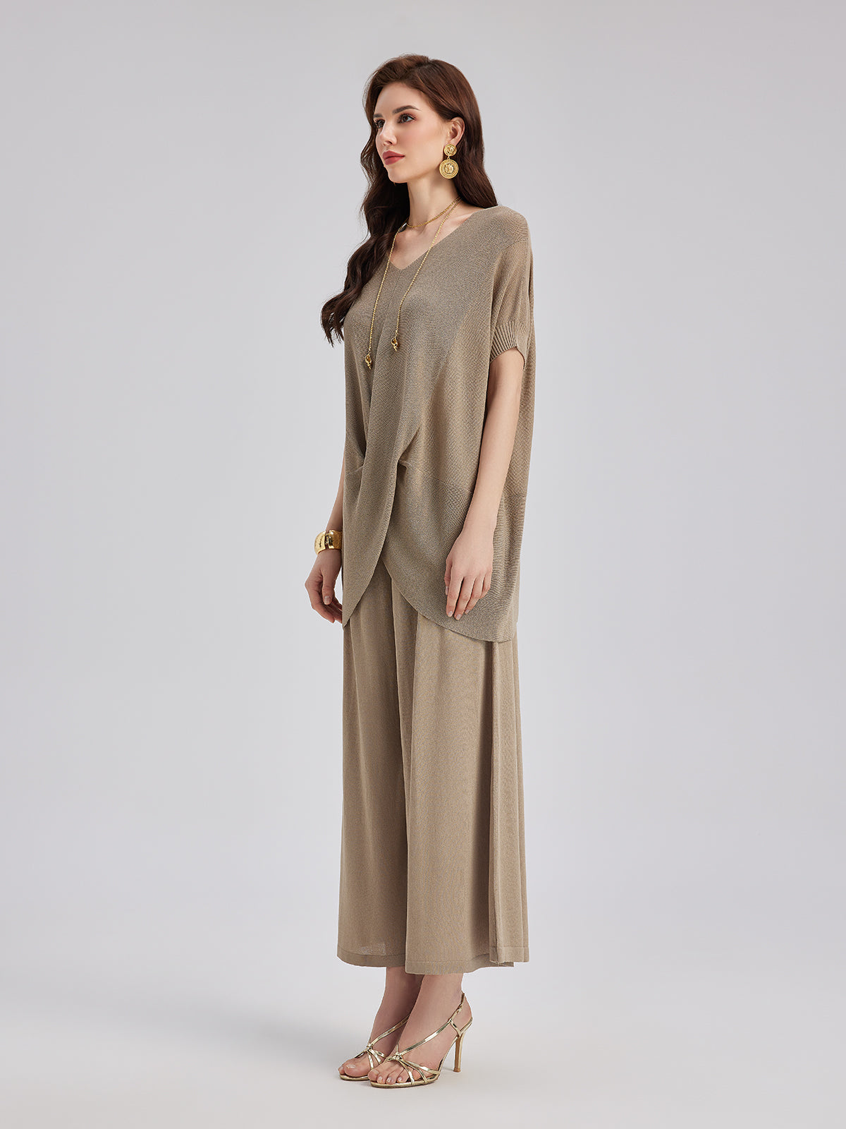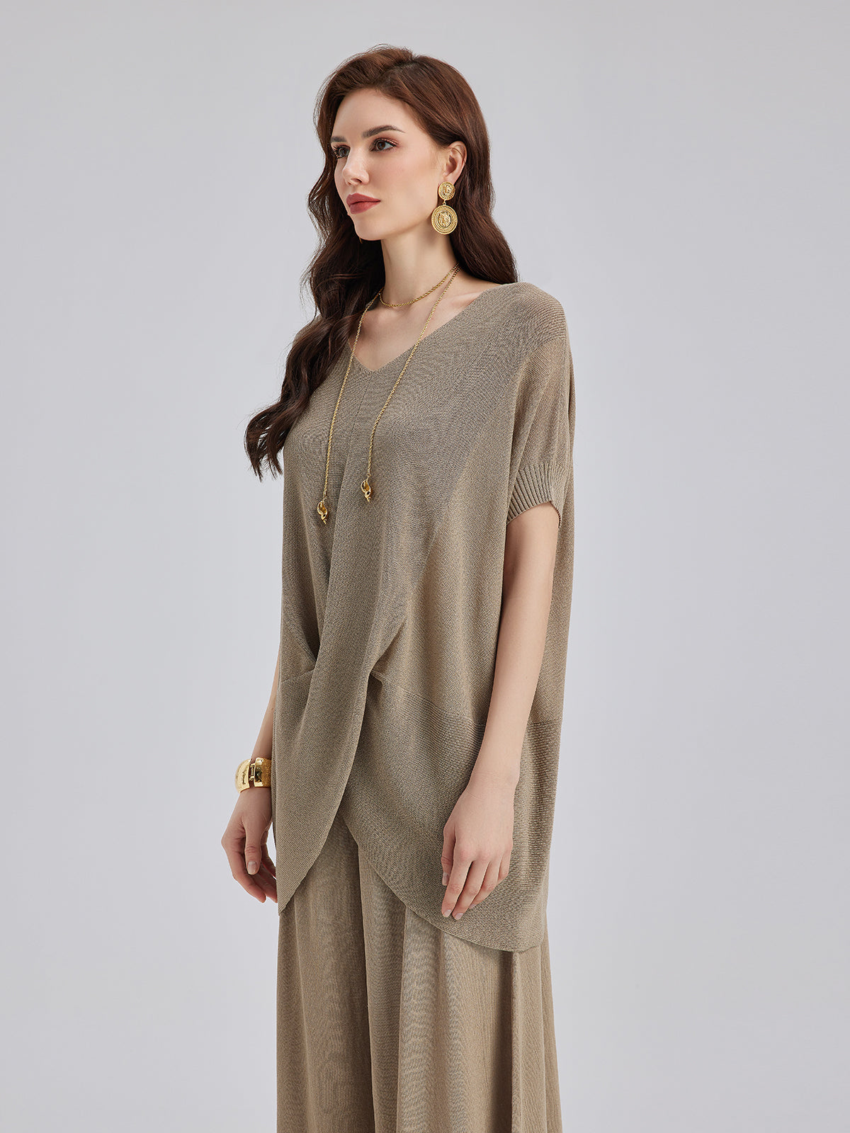 Relaxed fit with high body compatibility. Soft, draping fabric offers comfort and lightness. Asymmetrical French-style cross hem elongates the body. Batwing sleeves suit all body types.