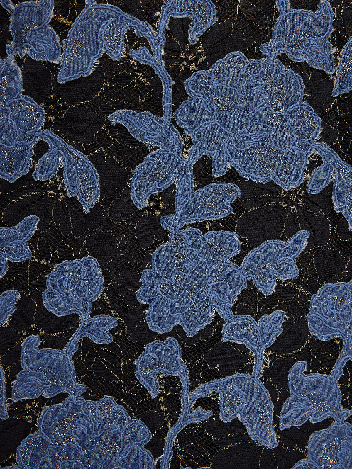 Premium jacquard fabric, woven with high-density technique, creates florals in a 3D relief texture, crisp yet fluid. Shimmering yarns trace petal veins with subtle sheen. A lace base lends delicacy and grace, while medium-scale roses offer a refined vintage mood without feeling old-fashioned.
