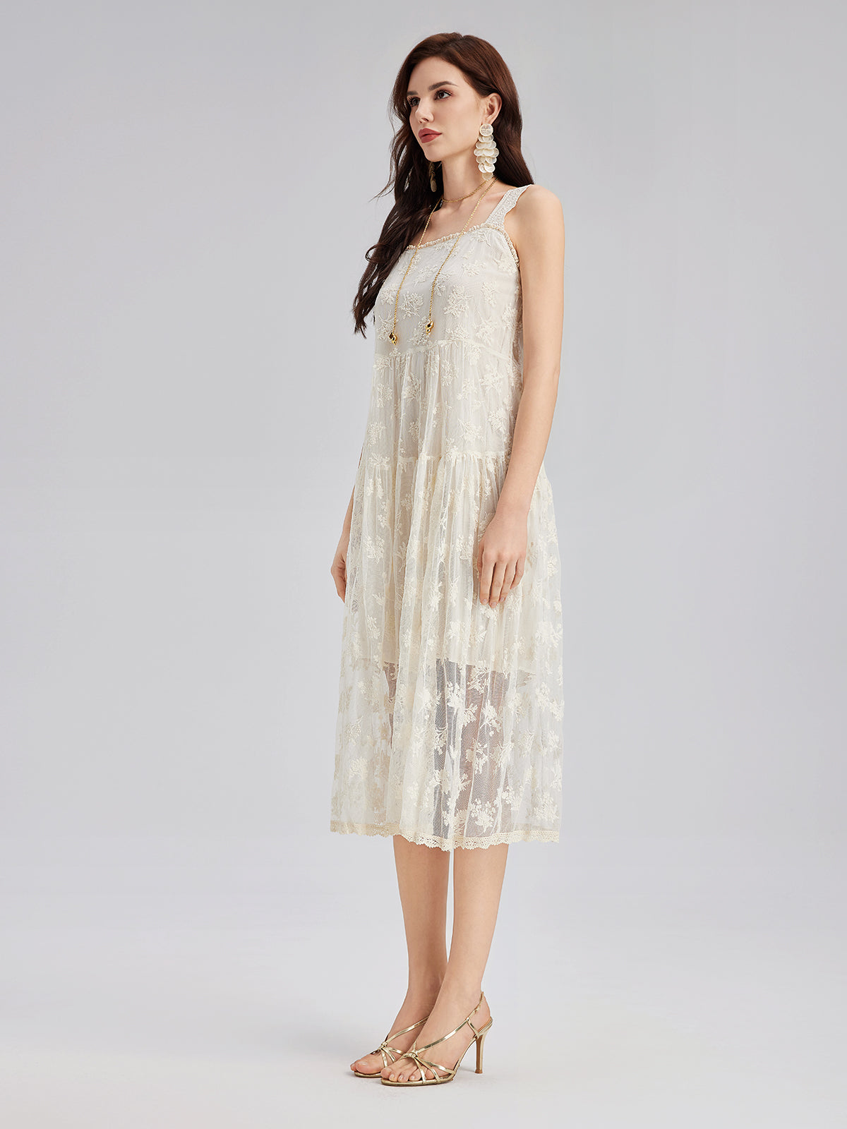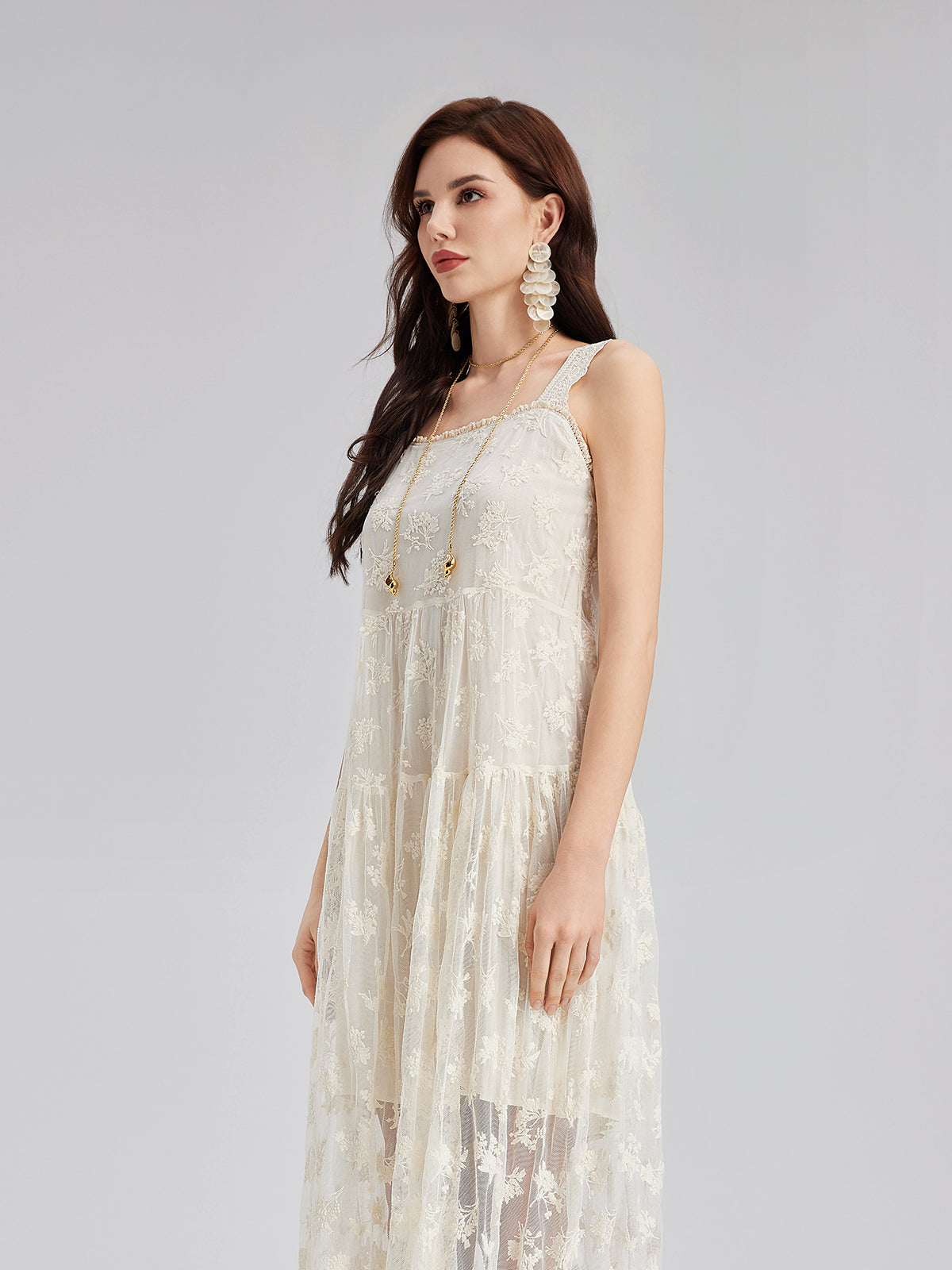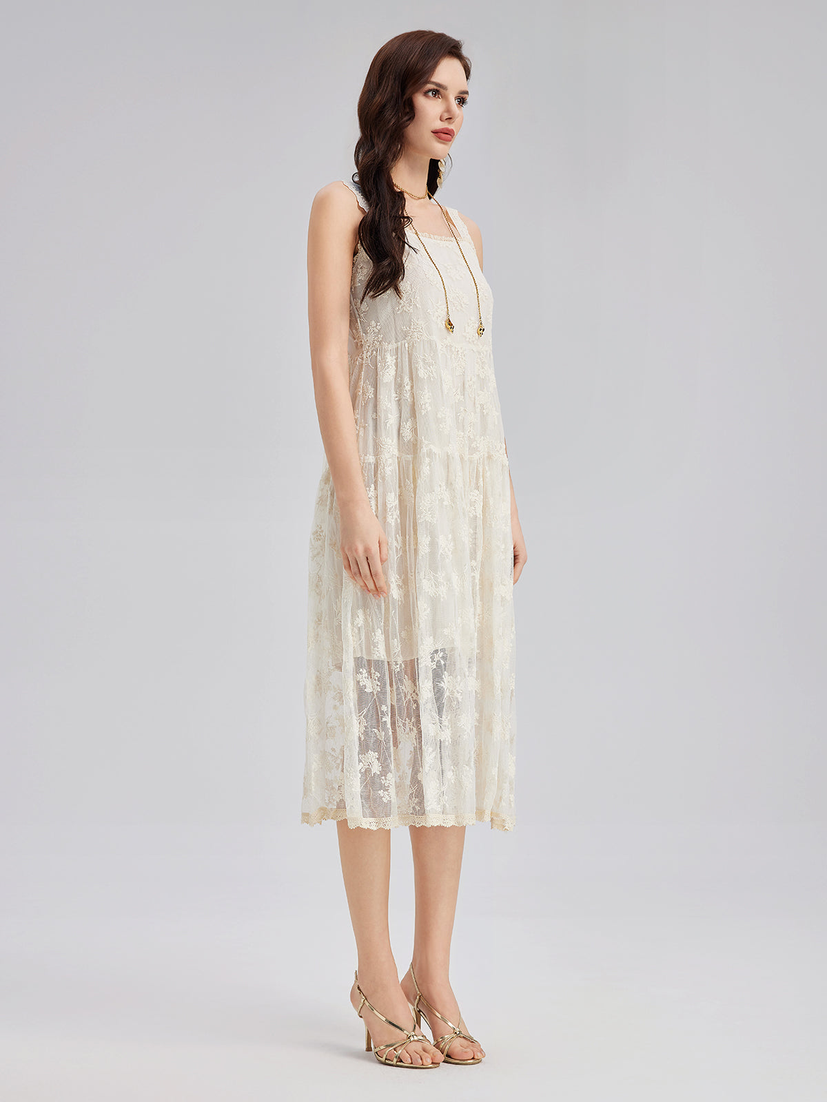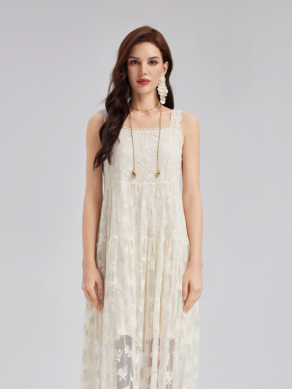 This elegant set includes a delicate lace slip dress and a matching hooded lace cape. Made from cotton with intricate embroidery and enhances feminine features. The light color scheme gives a fresh, coral feel, perfect for both at home and outings.