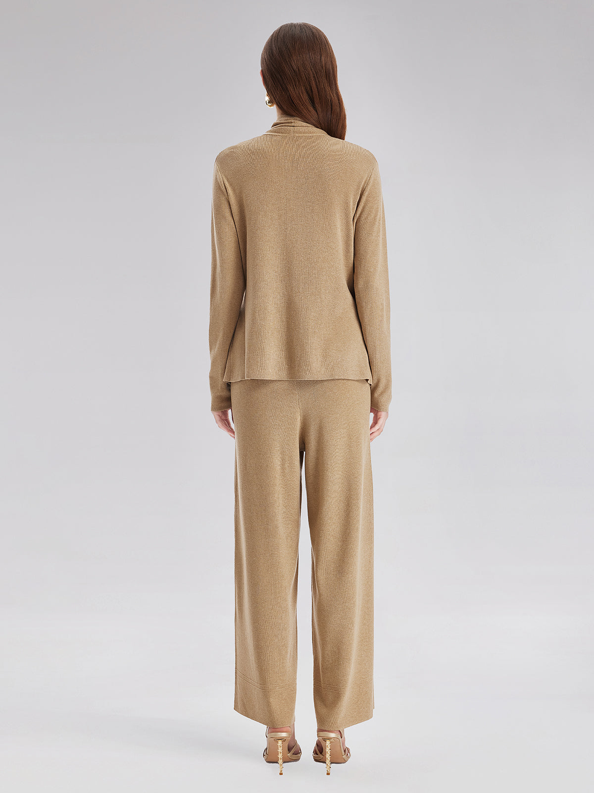 Made from soft, luxurious cashmere, these trousers provide warmth and comfort for cooler seasons. The wide-leg cut offers a relaxed yet sophisticated look, flattering various body types. Featuring an elastic waistband, they ensure a perfect fit and effortless wear, combining elegance with ease.