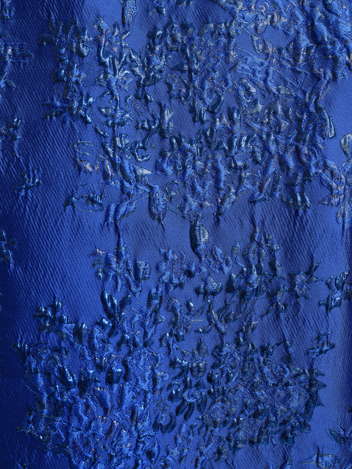 An elegant jacquard jacket with softly revealed floral motifs, evoking vintage refinement. Hand-applied beading adds depth and subtle movement, while concealed snap fastenings maintain a clean, polished front. Side pockets offer functionality without interrupting the silhouette. The relaxed cut flatters a range of body types across seasons.