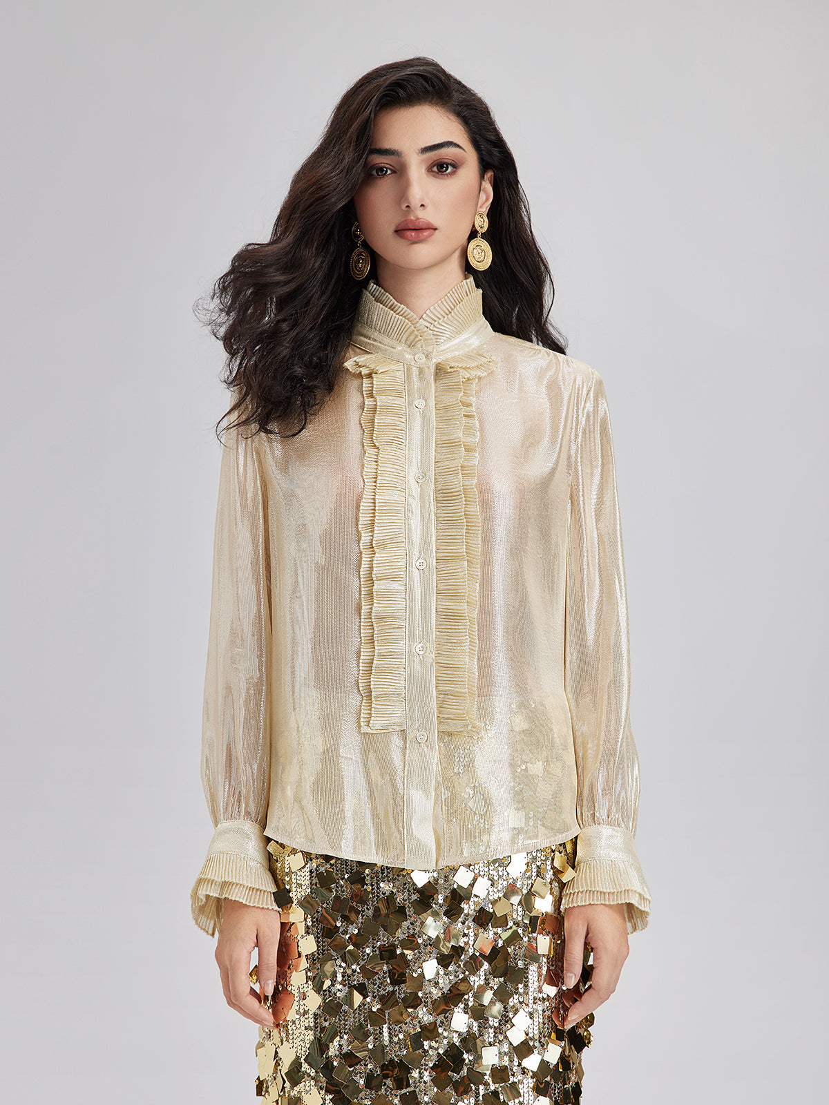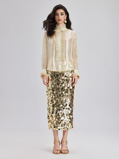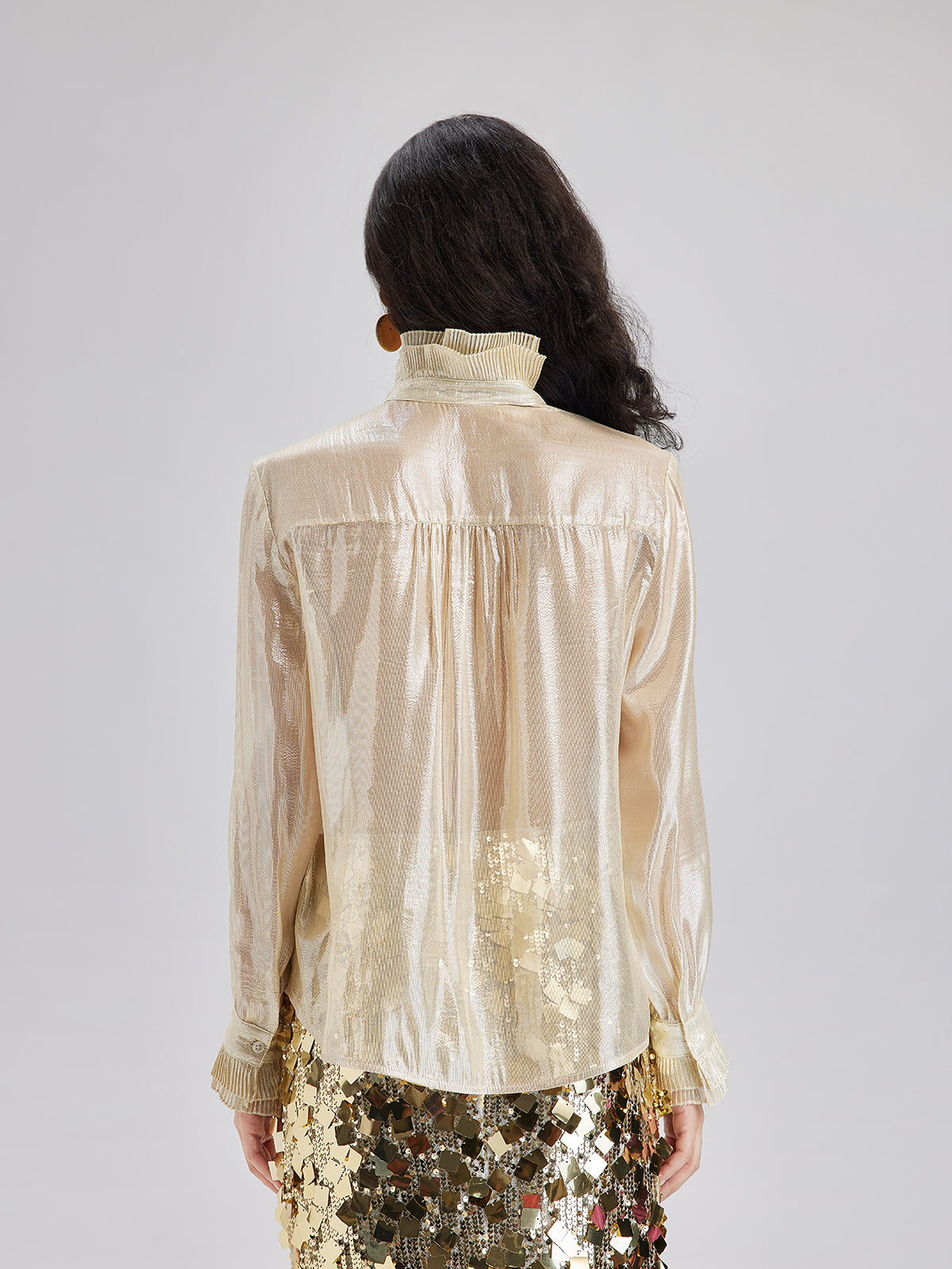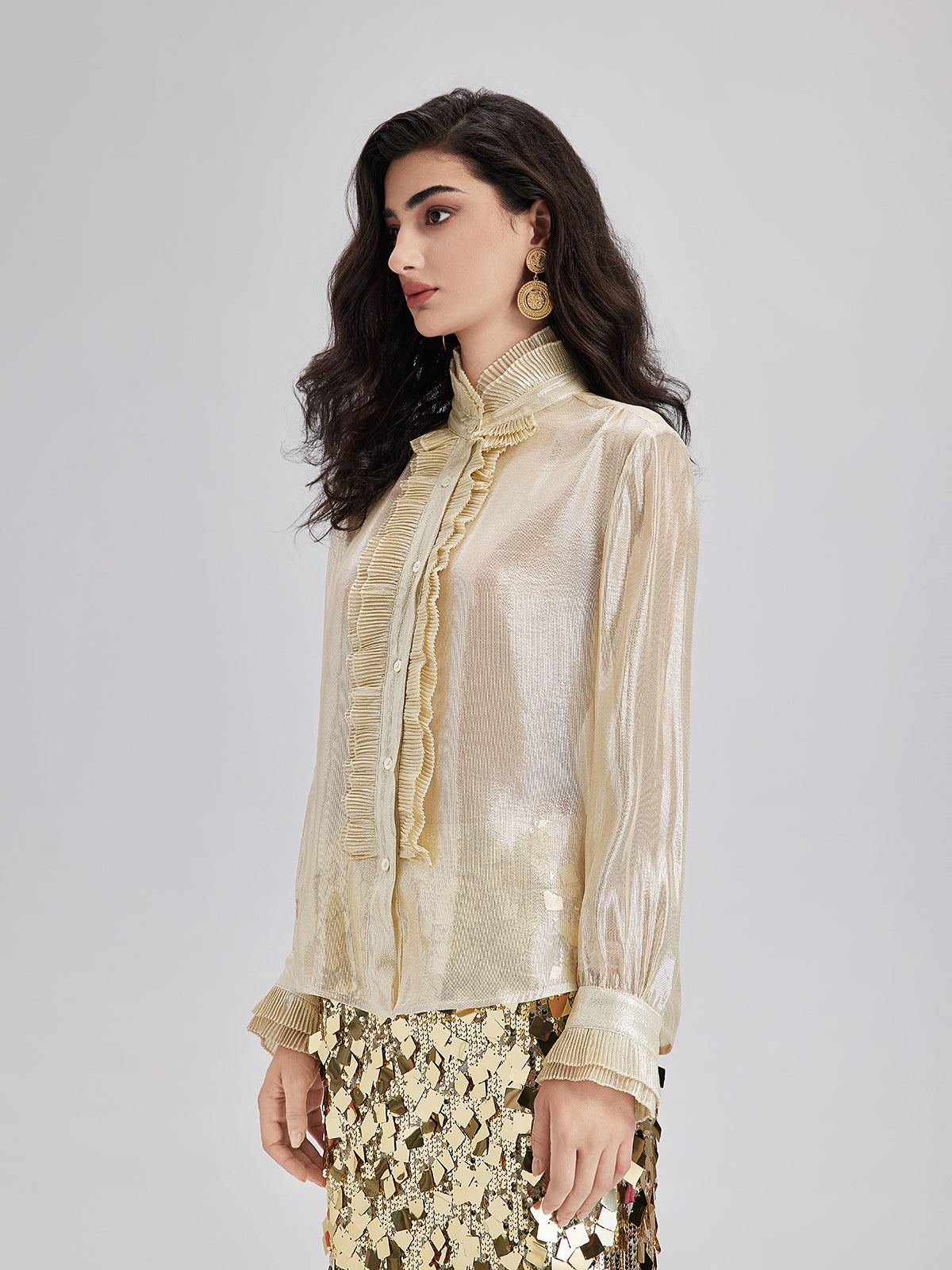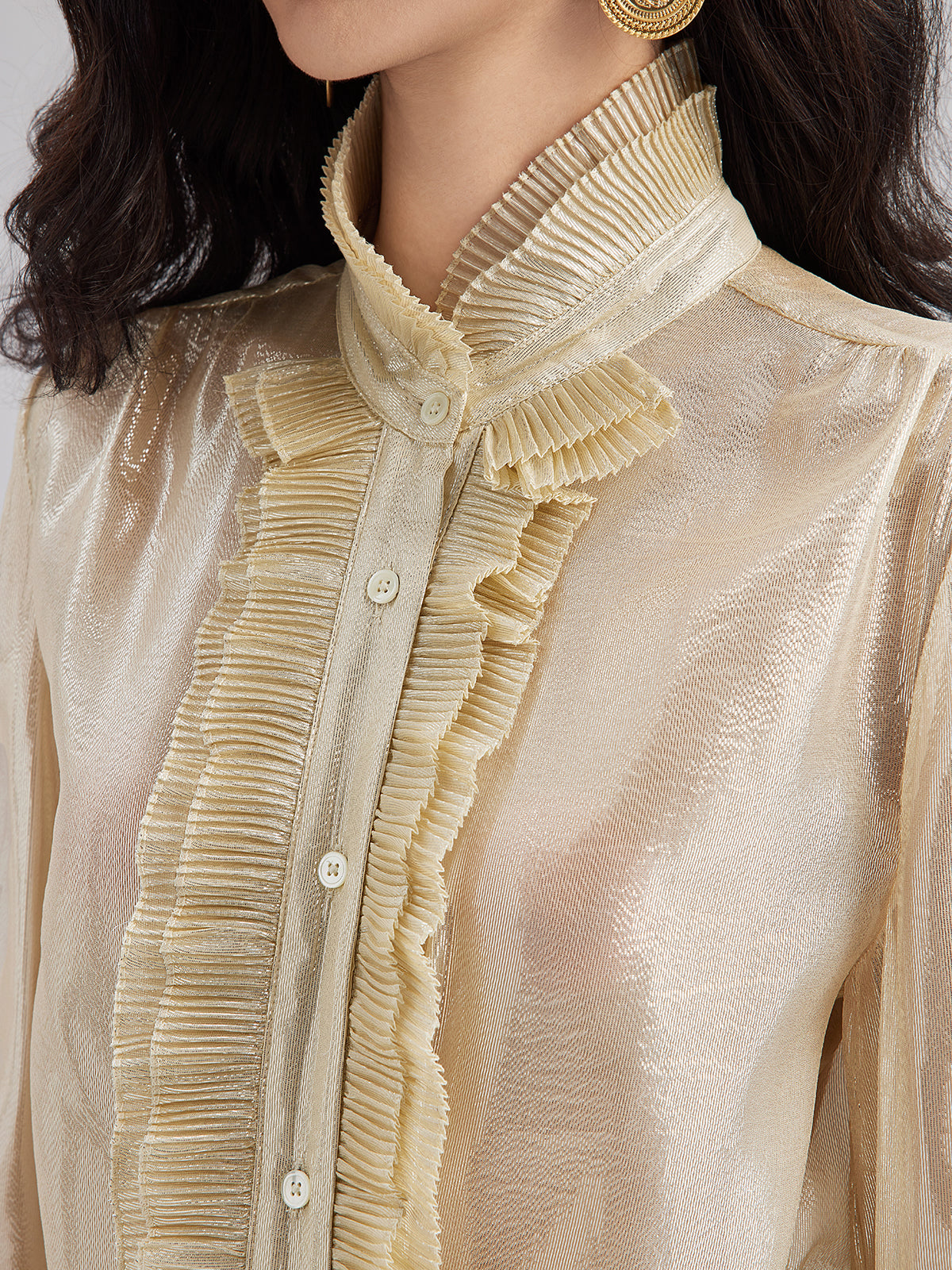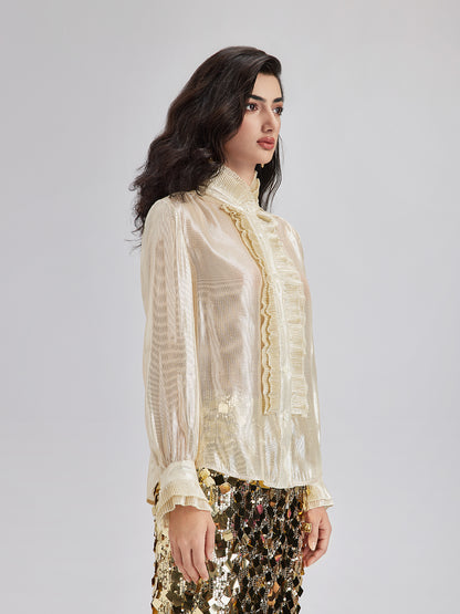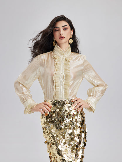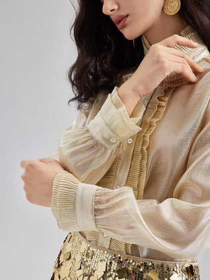 Silk Gold-Foil Pleated Shirt - Chic Style