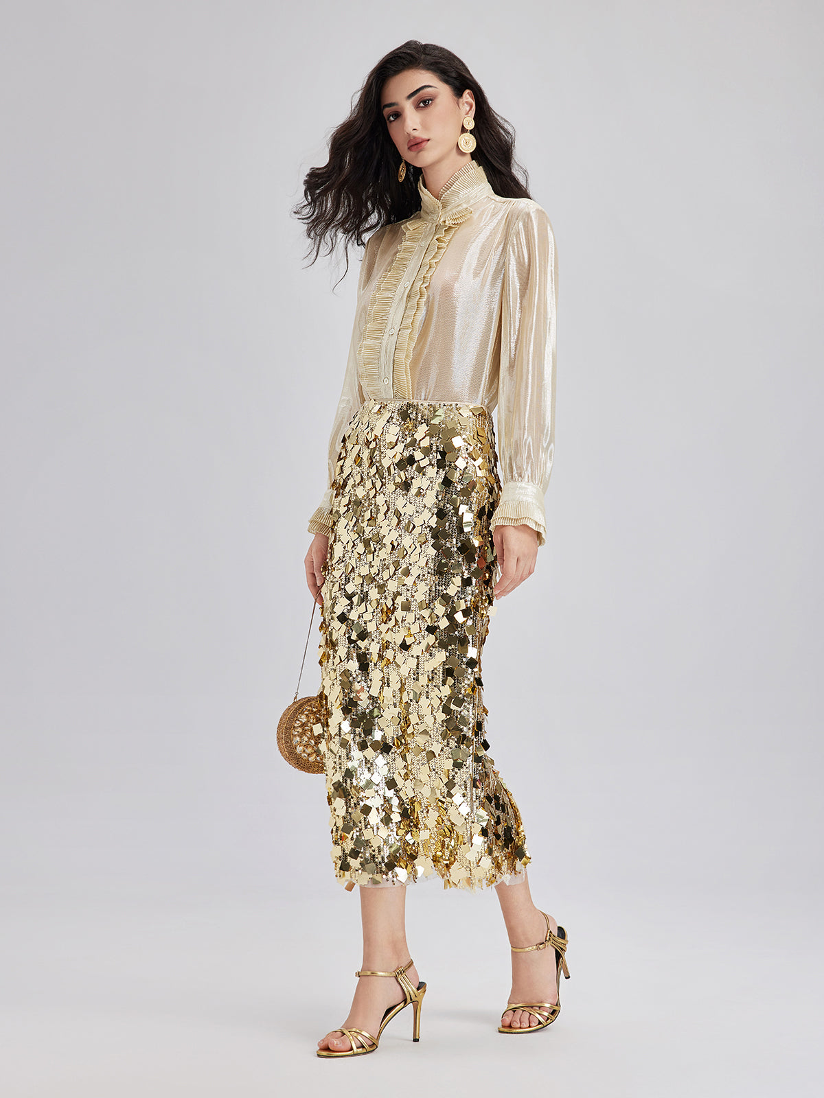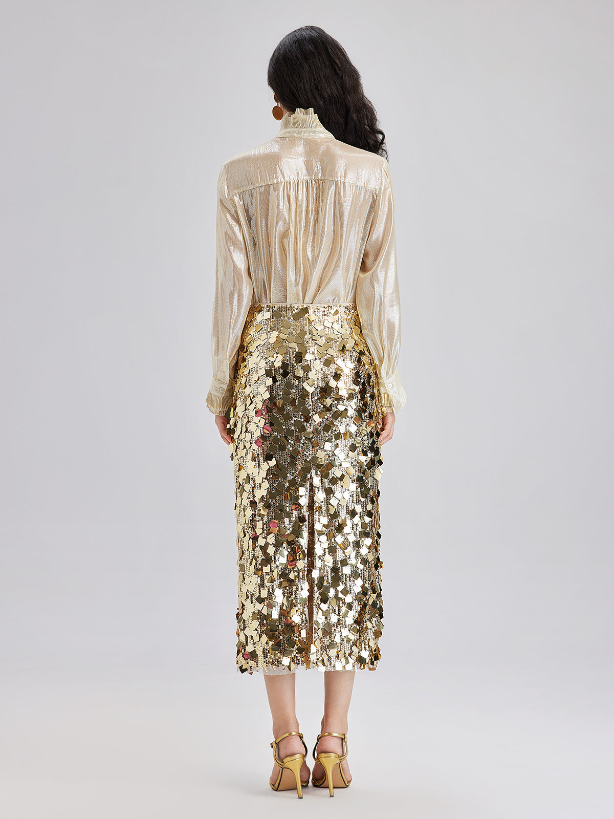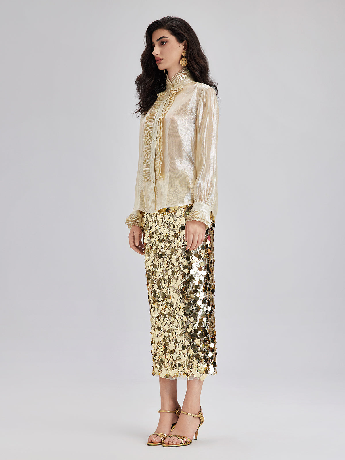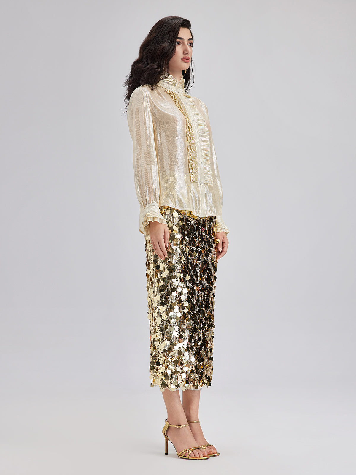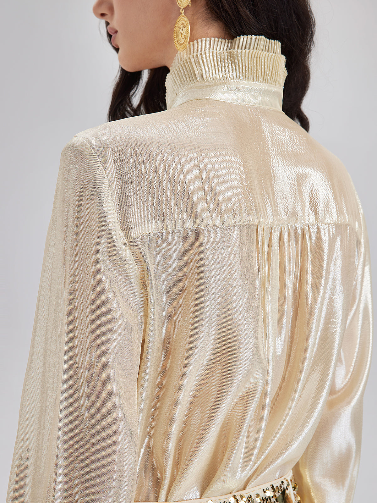 Silk Gold-Foil Pleated Shirt - Chic Style