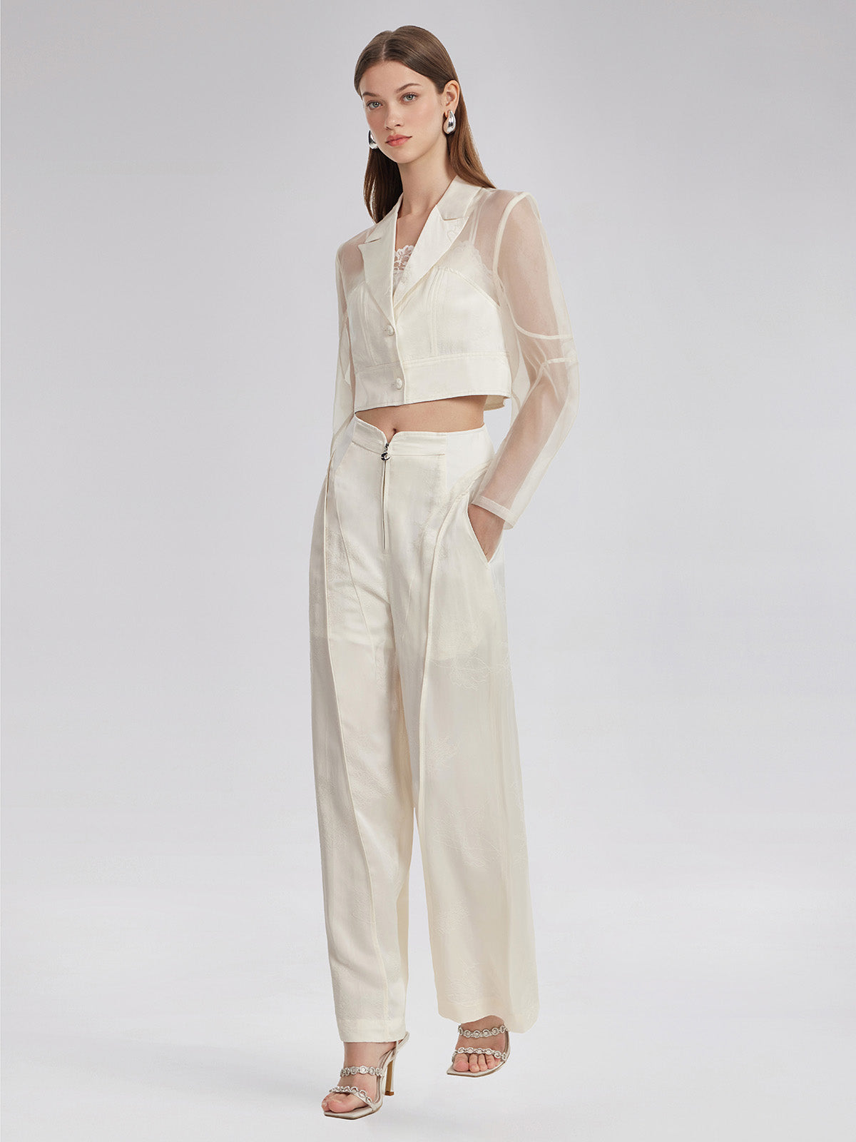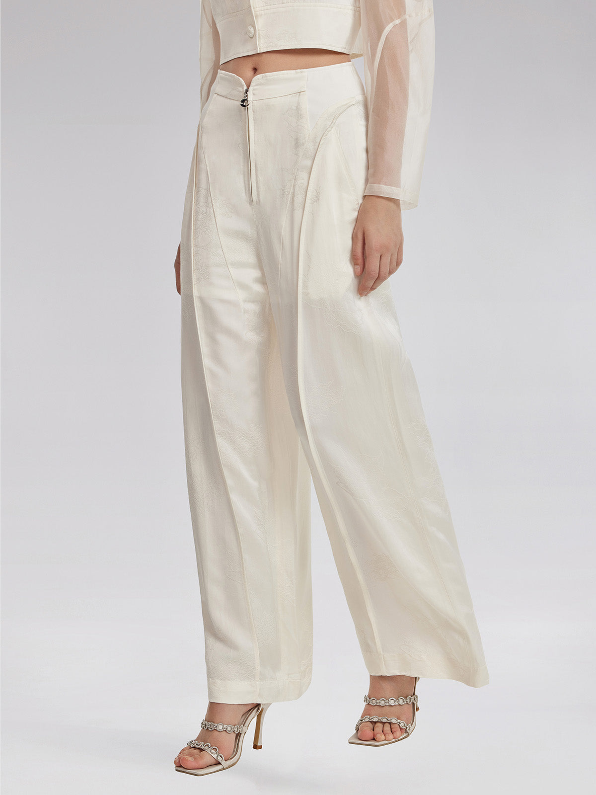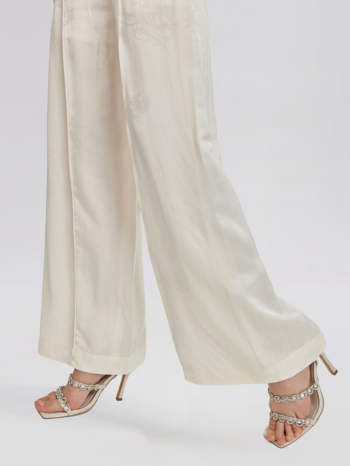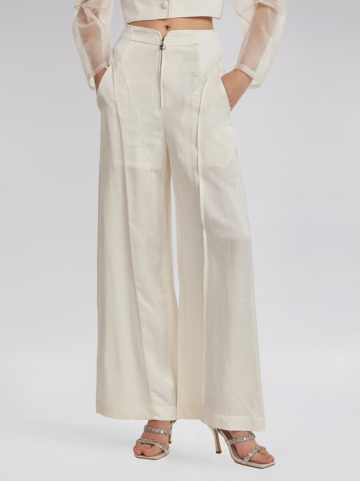 Made from premium silk fabric for a luxurious feel. The pants feature intricate embroidery, adding elegance and sophistication. The high-waist cut enhances the waistline and elongates the legs. Perfect for casual, daily wear, vacations, and outdoor activities.