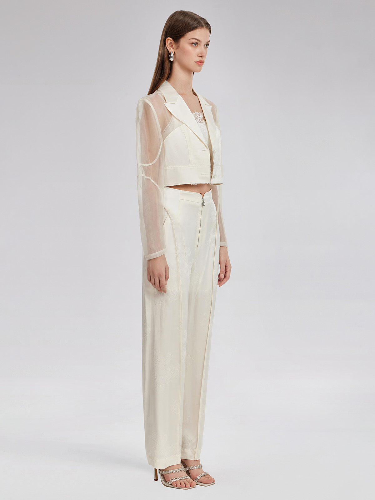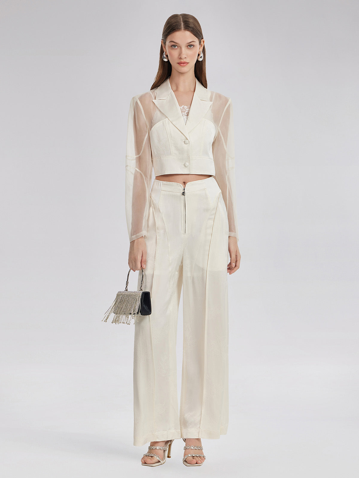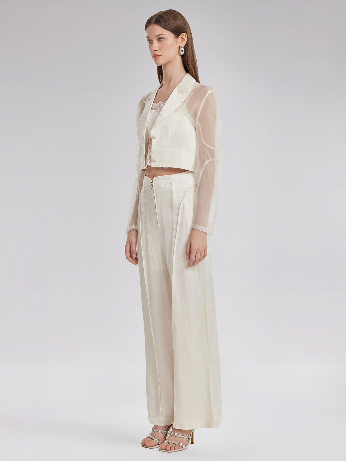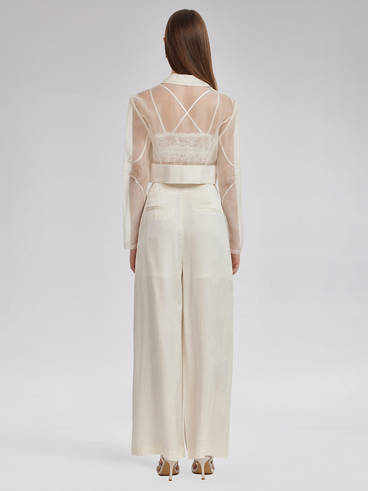 Made from premium silk fabric for a luxurious feel. The pants feature intricate embroidery, adding elegance and sophistication. The high-waist cut enhances the waistline and elongates the legs. Perfect for casual, daily wear, vacations, and outdoor activities.