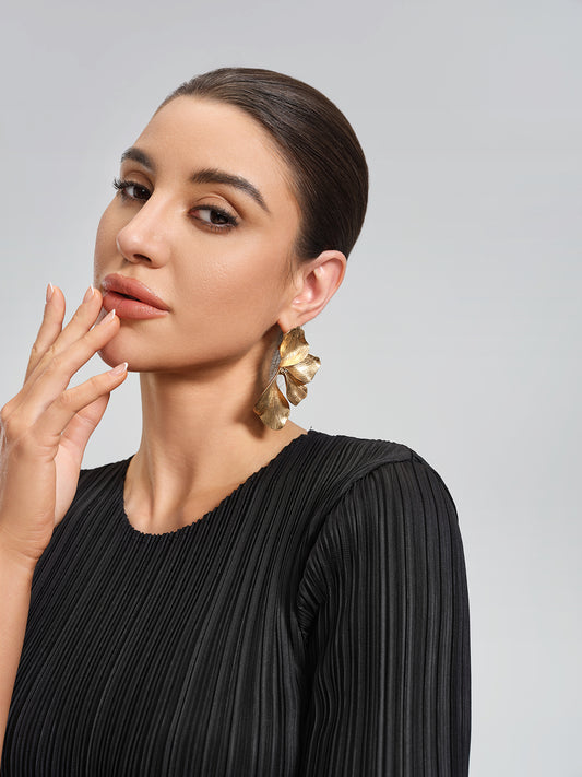 Ginkgo Leaf Gold Tone Earrings