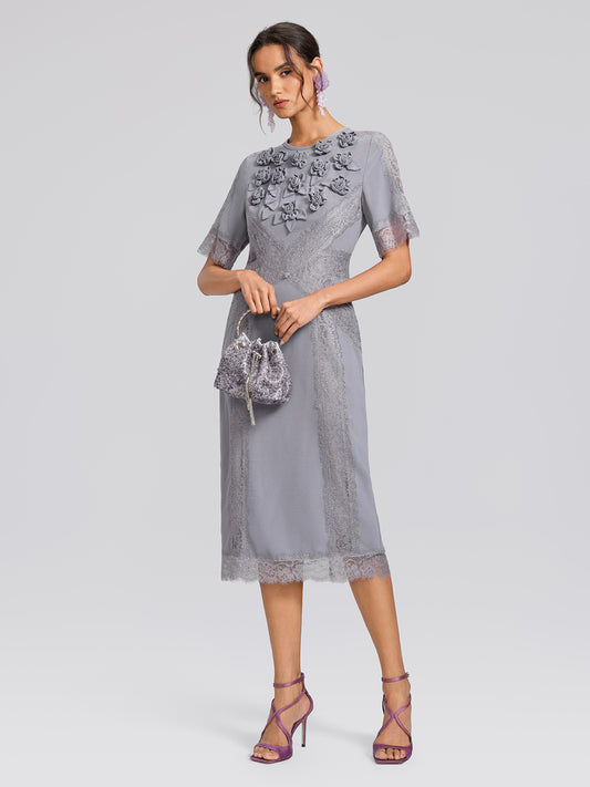 Handcrafted Rose Lace Panel Dress