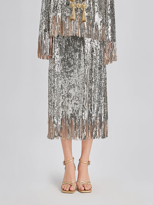 Iridescent Sequin Front-Slit Mermaid Skirt