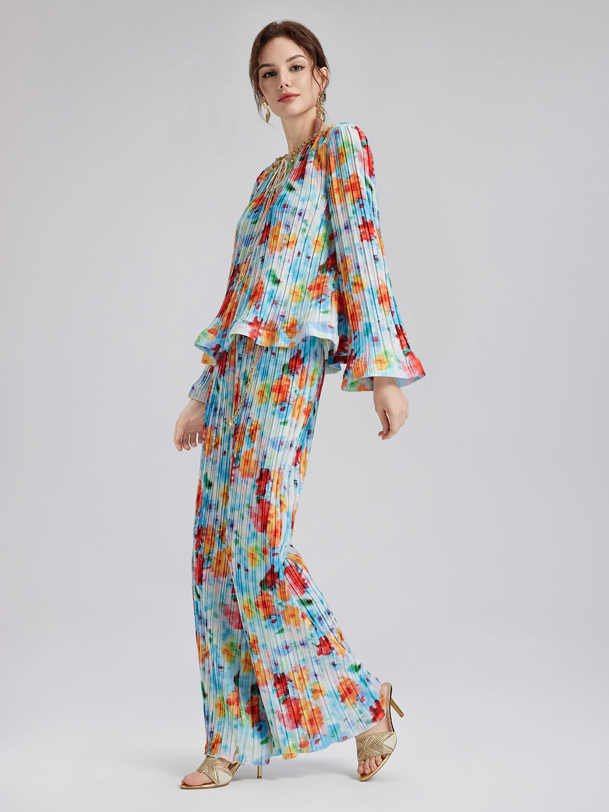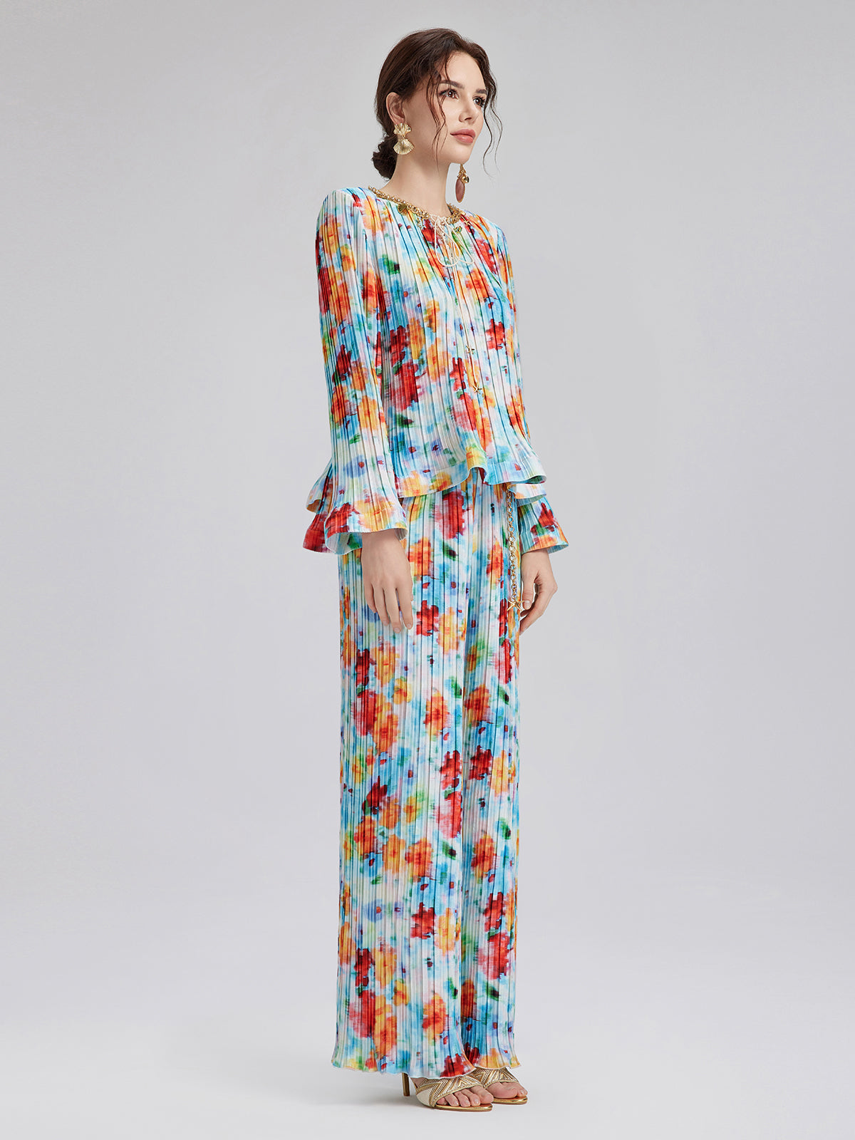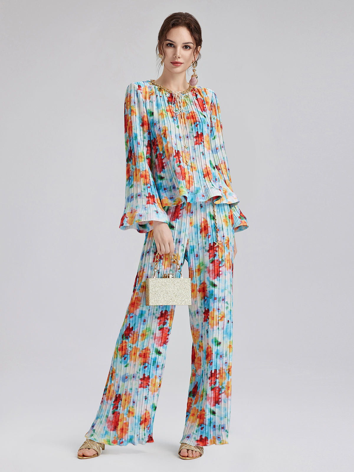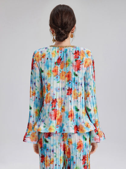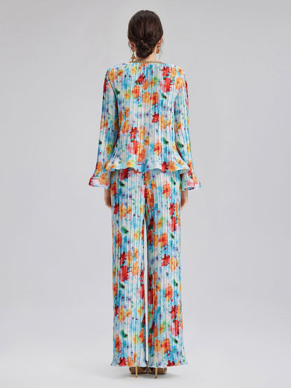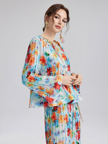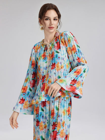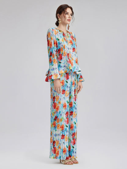 Beaded Watercolor Pleated Set