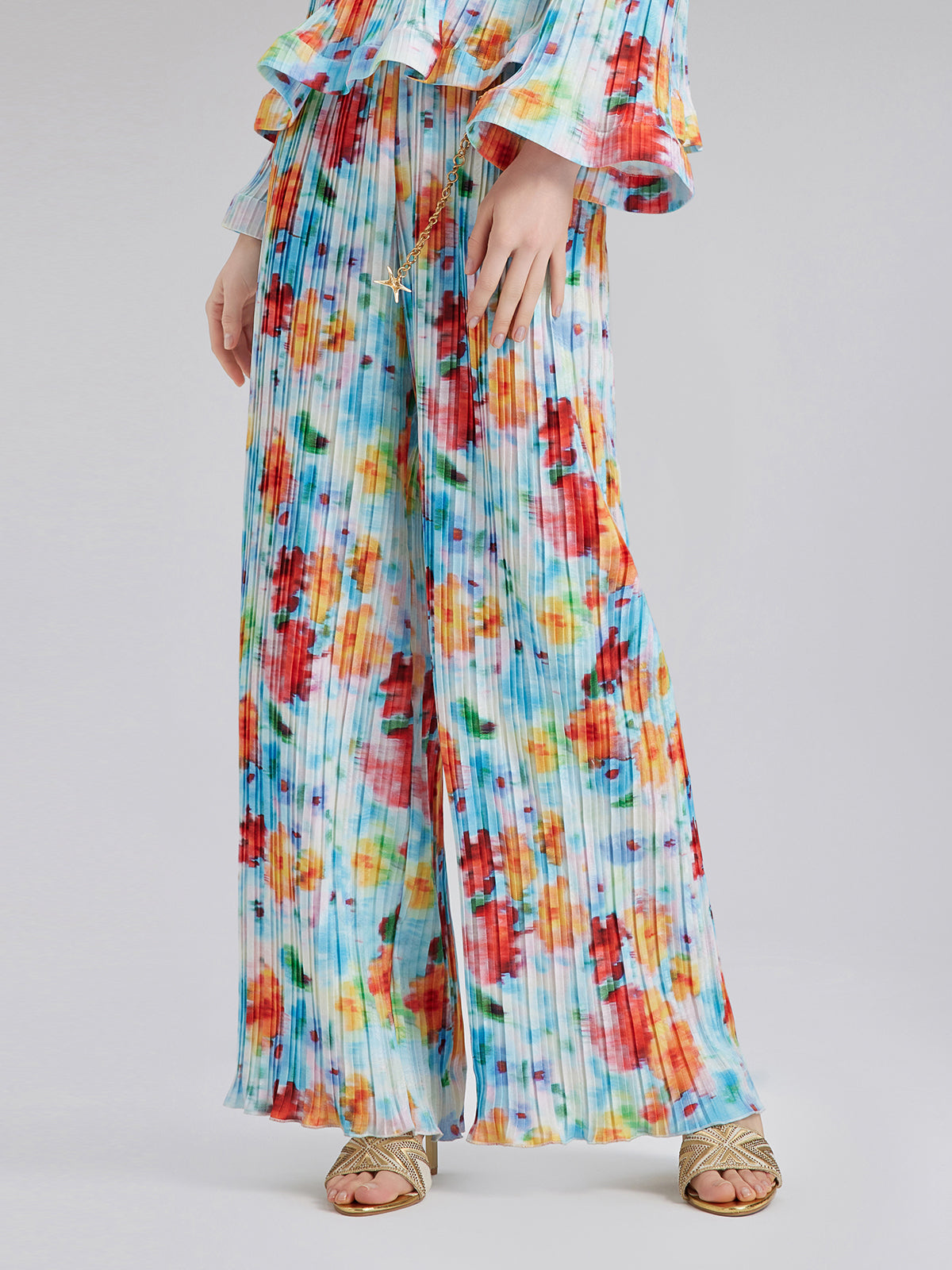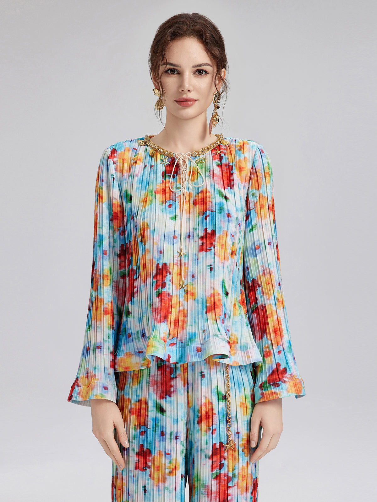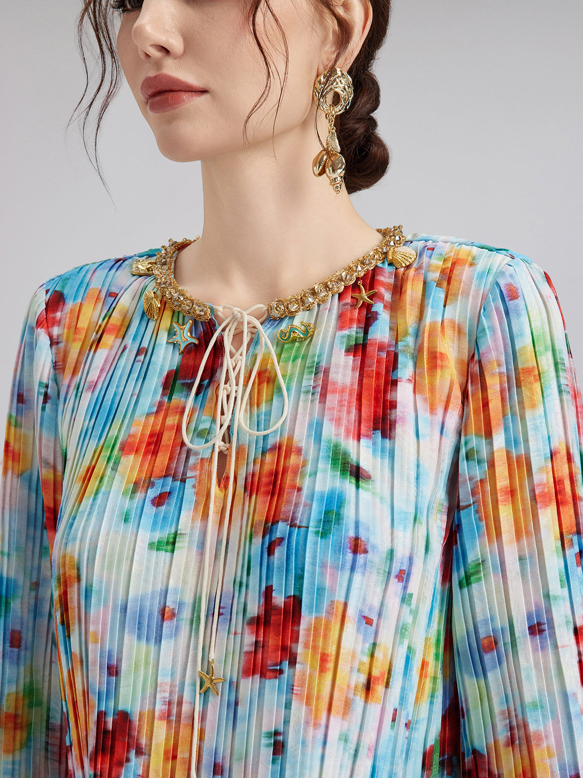 Beaded Watercolor Pleated Set