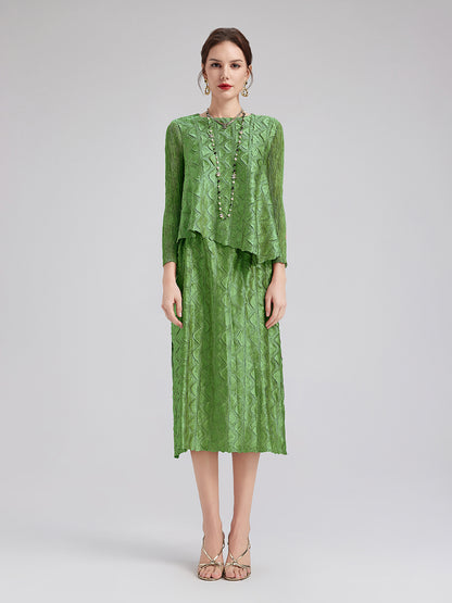 Unique pleats add texture and depth. The asymmetric hem breaks traditional design, showcasing personality and style. Perfect for casual outings, gatherings, and dates, adding a mix of individuality and elegance.
