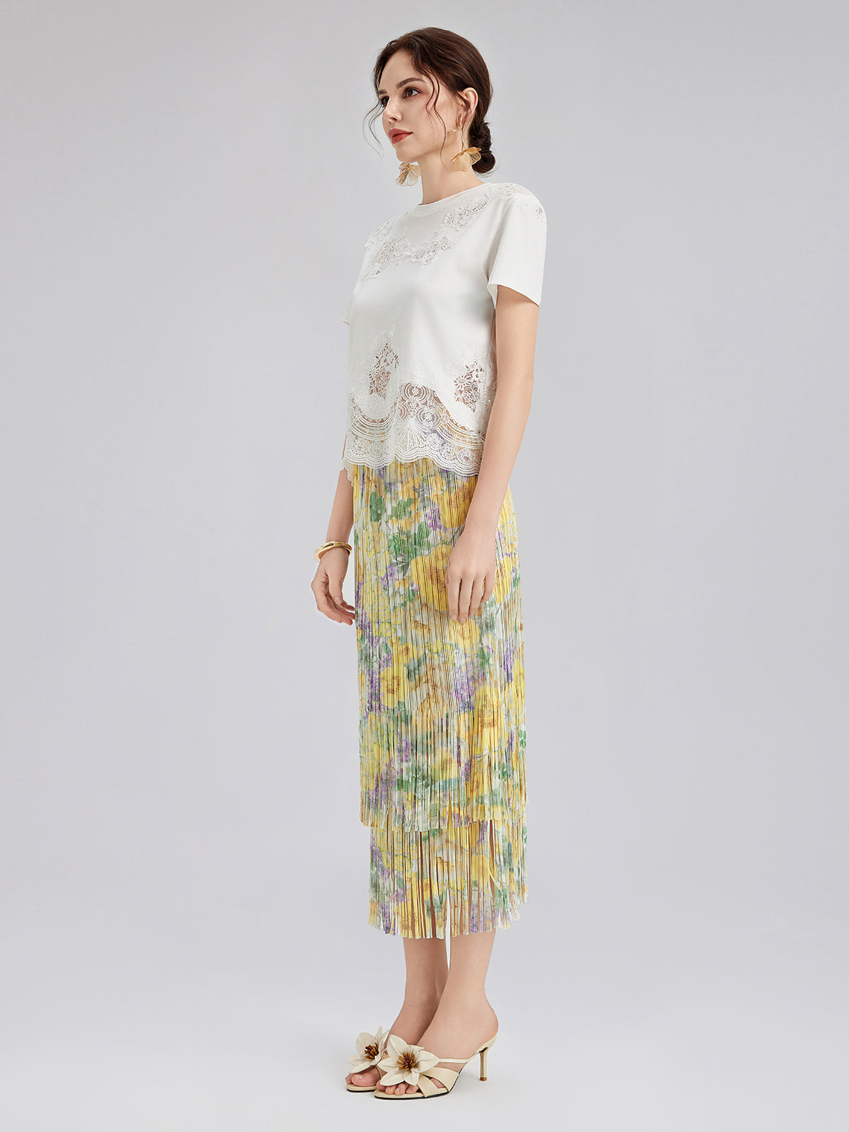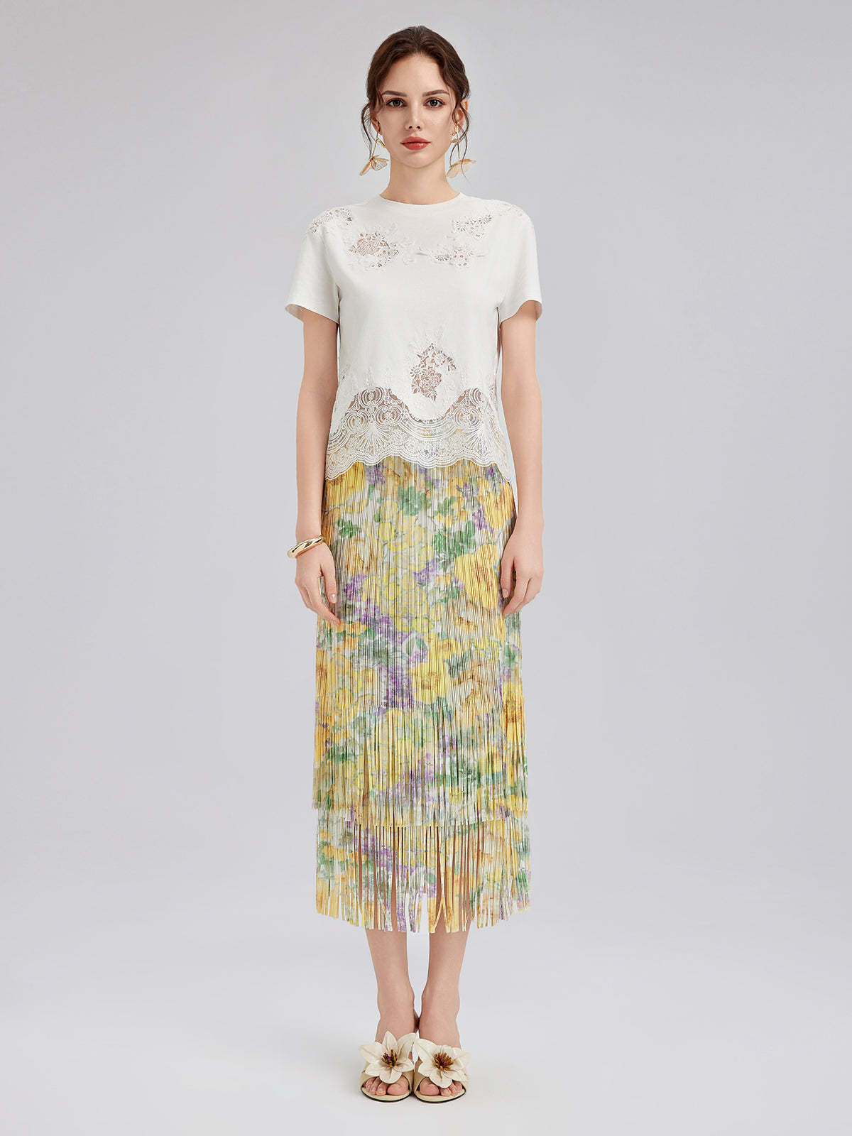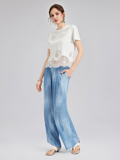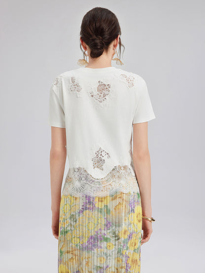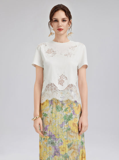 Crafted from soft, smooth 100% cotton that’s breathable, sweat-absorbent, and gentle on sensitive skin. The slight stretch and tailored fit offer comfort and shape without feeling tight. Features a gentle crew neck for a youthful touch. Delicate lace patches add romantic texture and subtle dimension.