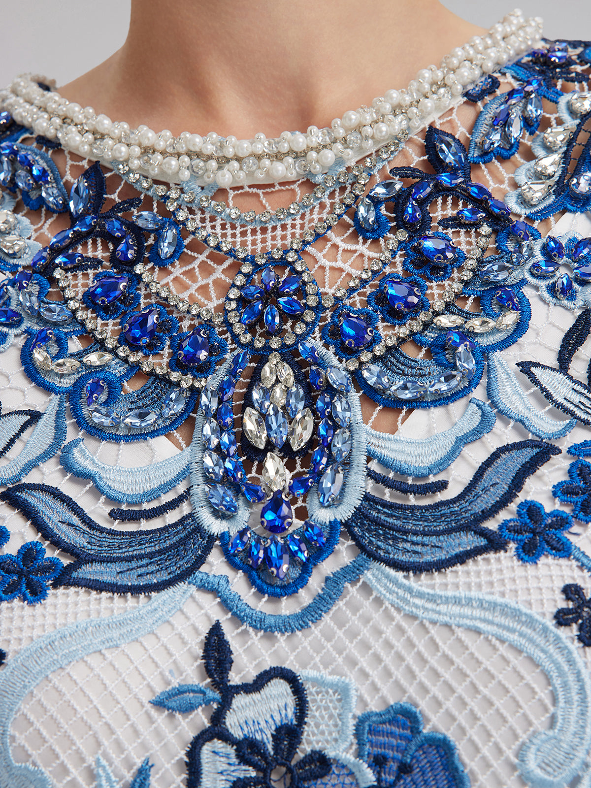 Guipure Lace Hand-Applied Crystals Mini Dress