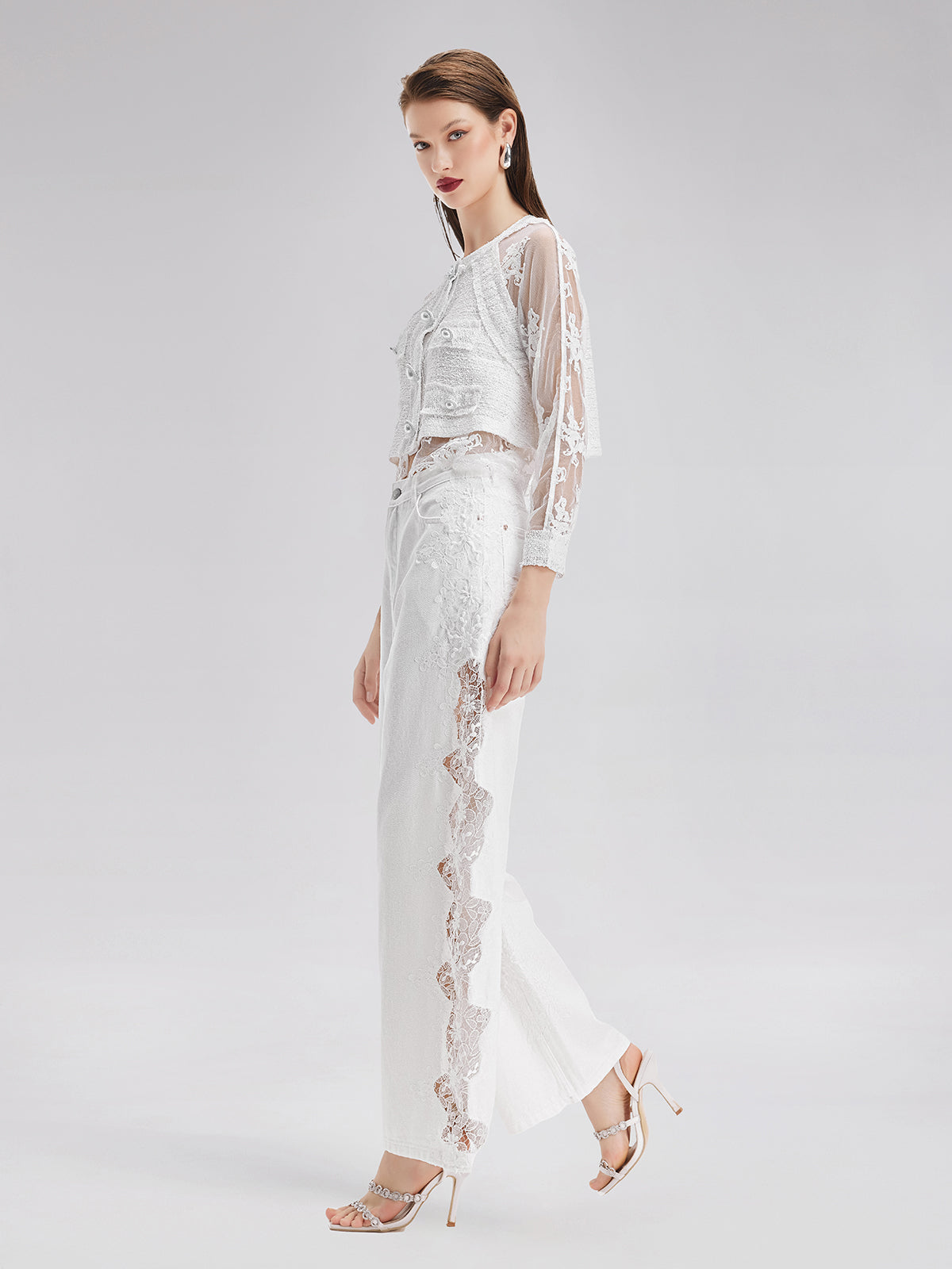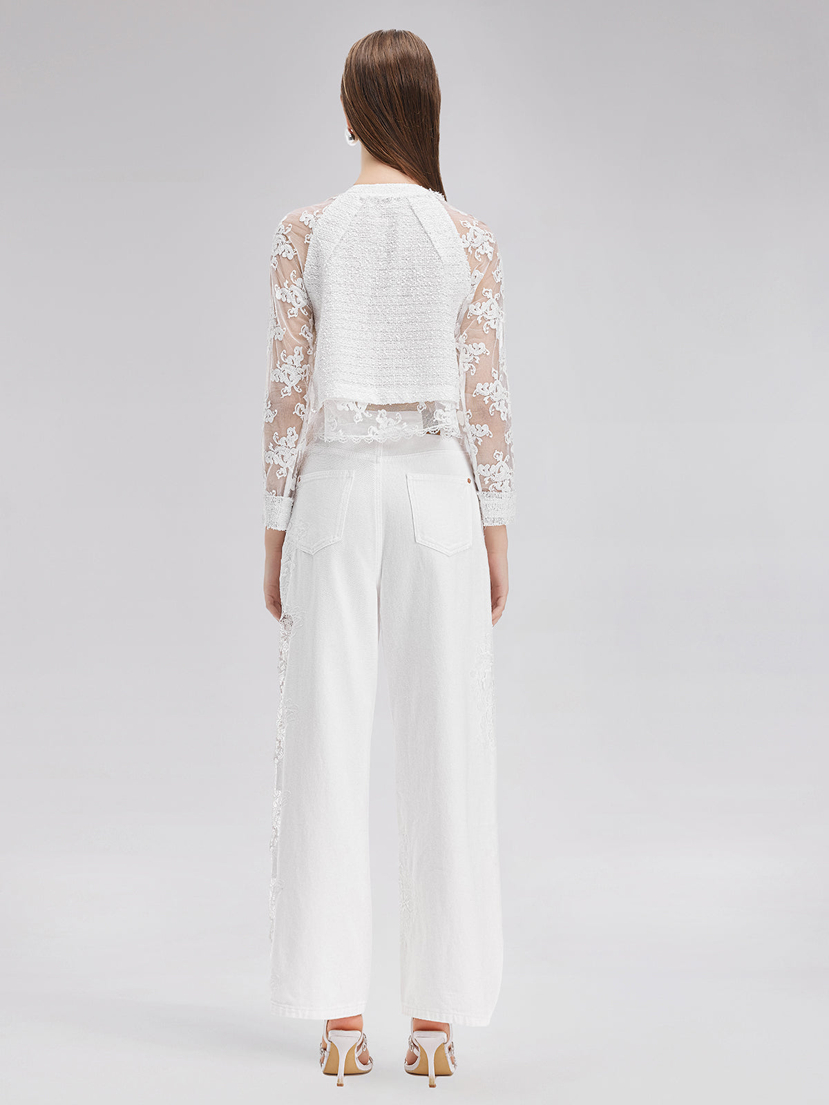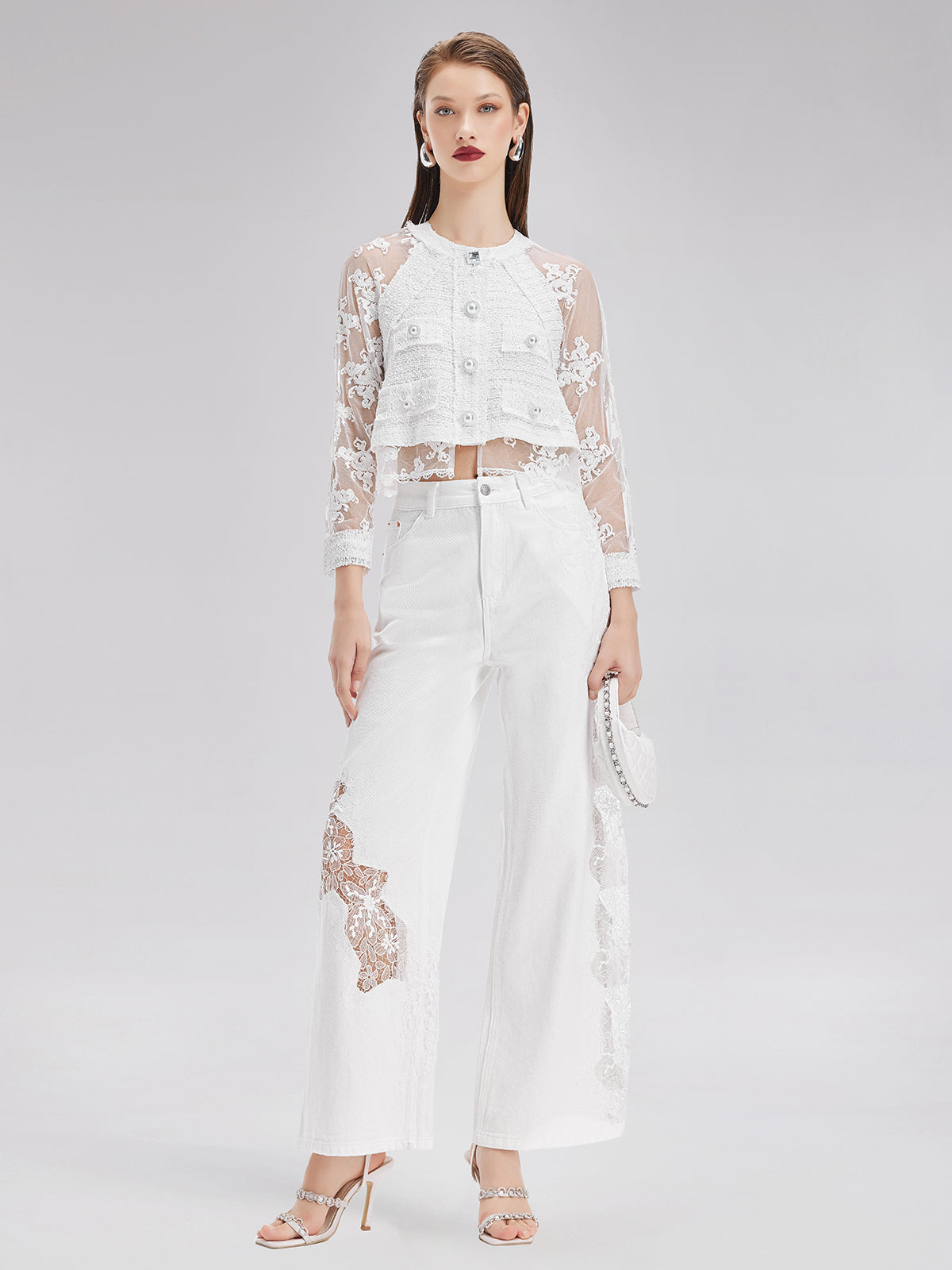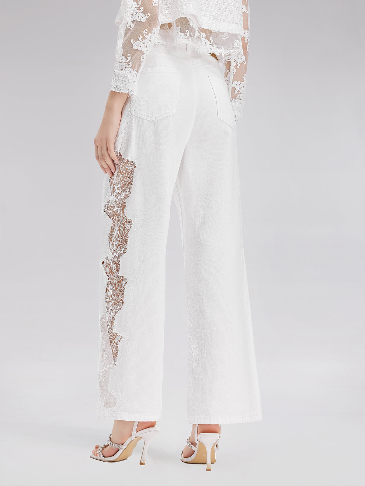 These high-waist jeans blend knightly charm with modern sophistication. Featuring a slightly loose fit and lace embroidery patchwork details, they provide you the comfortable wearing and chic style outfit. Perfect for daily commutes, business meetings, and urban leisure, gatherings, vacation and more.