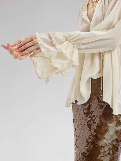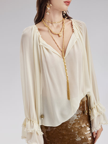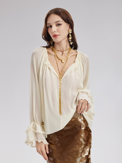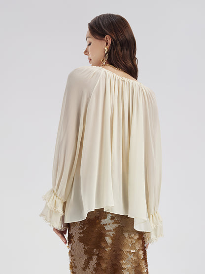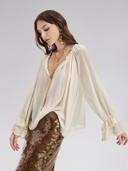 Lantern Sleeve Silk Blouse