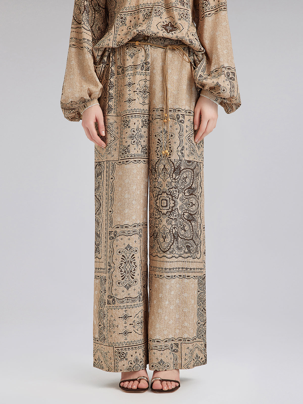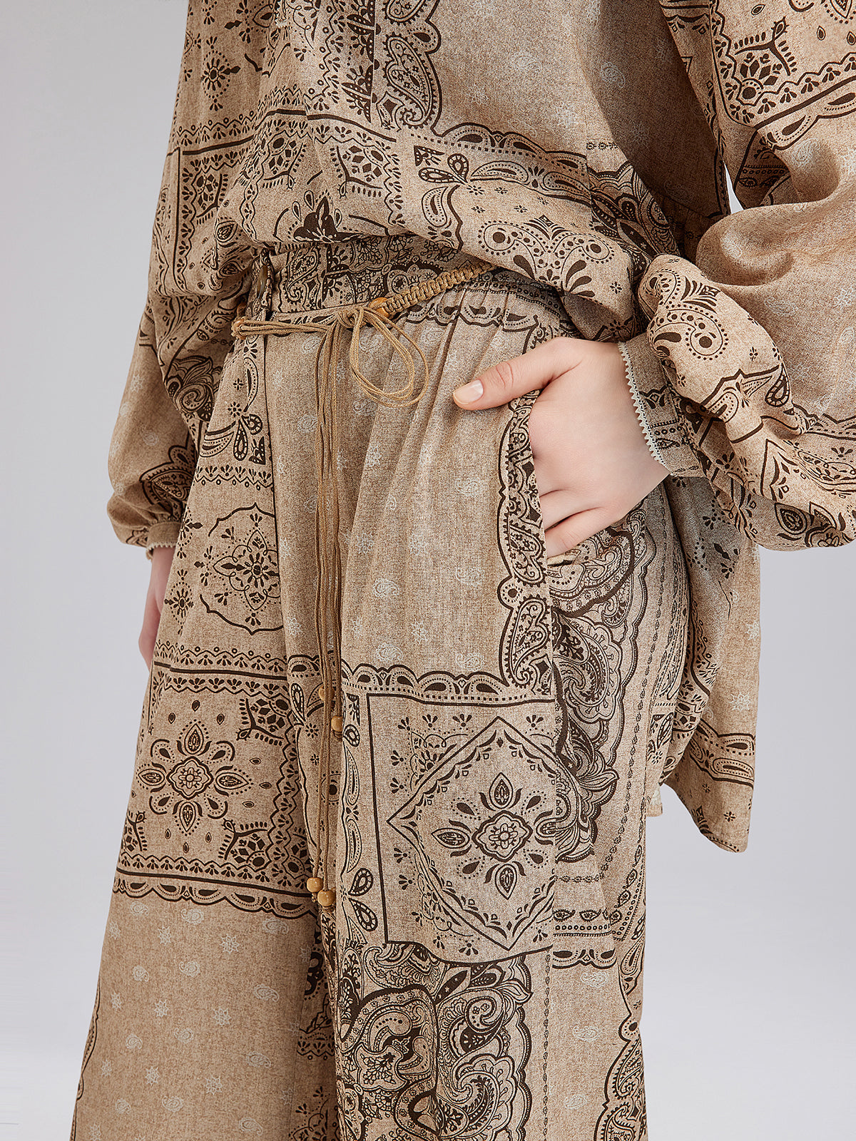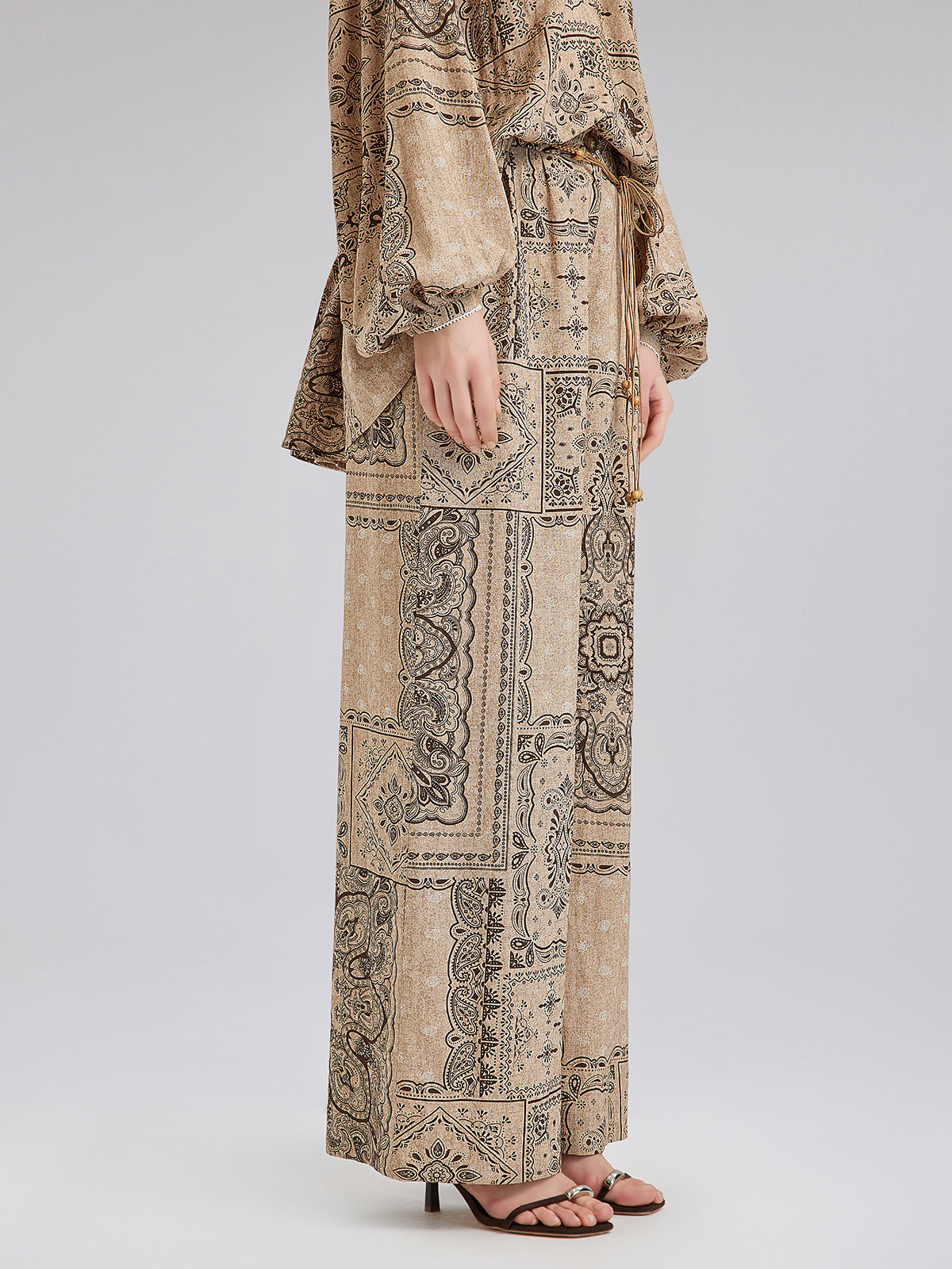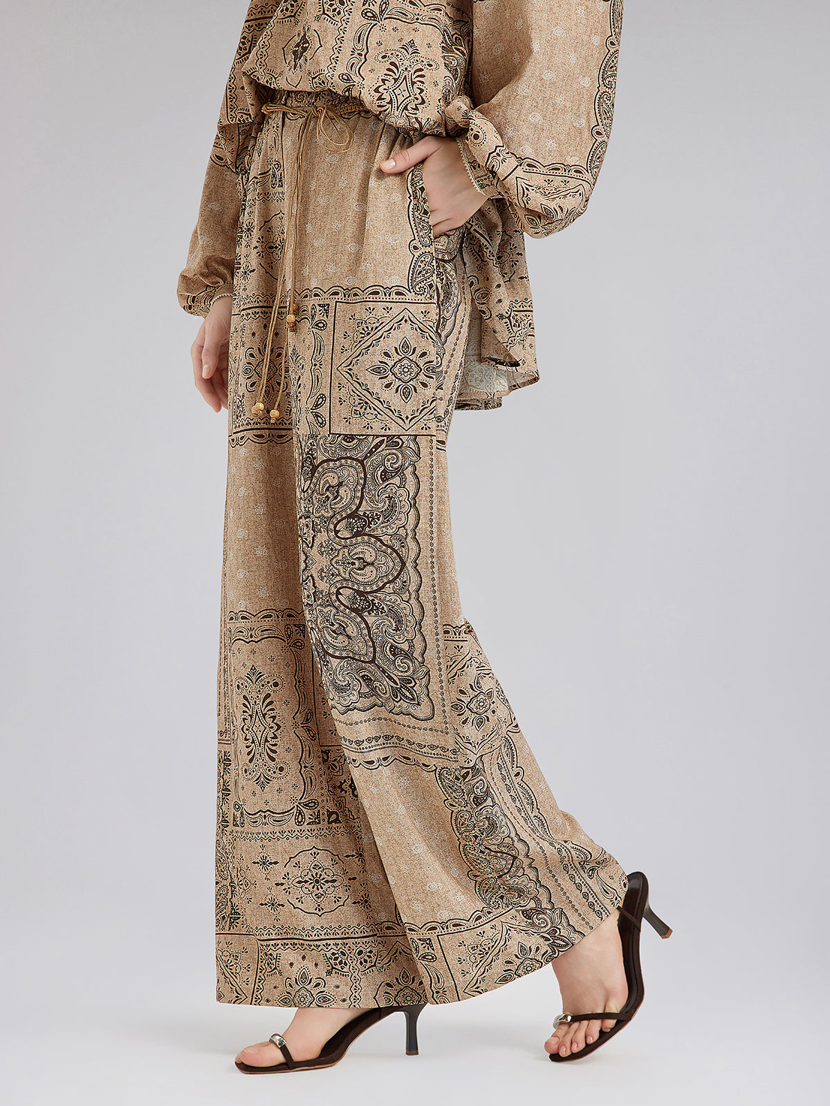 Paisley Print Vacation Wide-Leg Pants with Belt