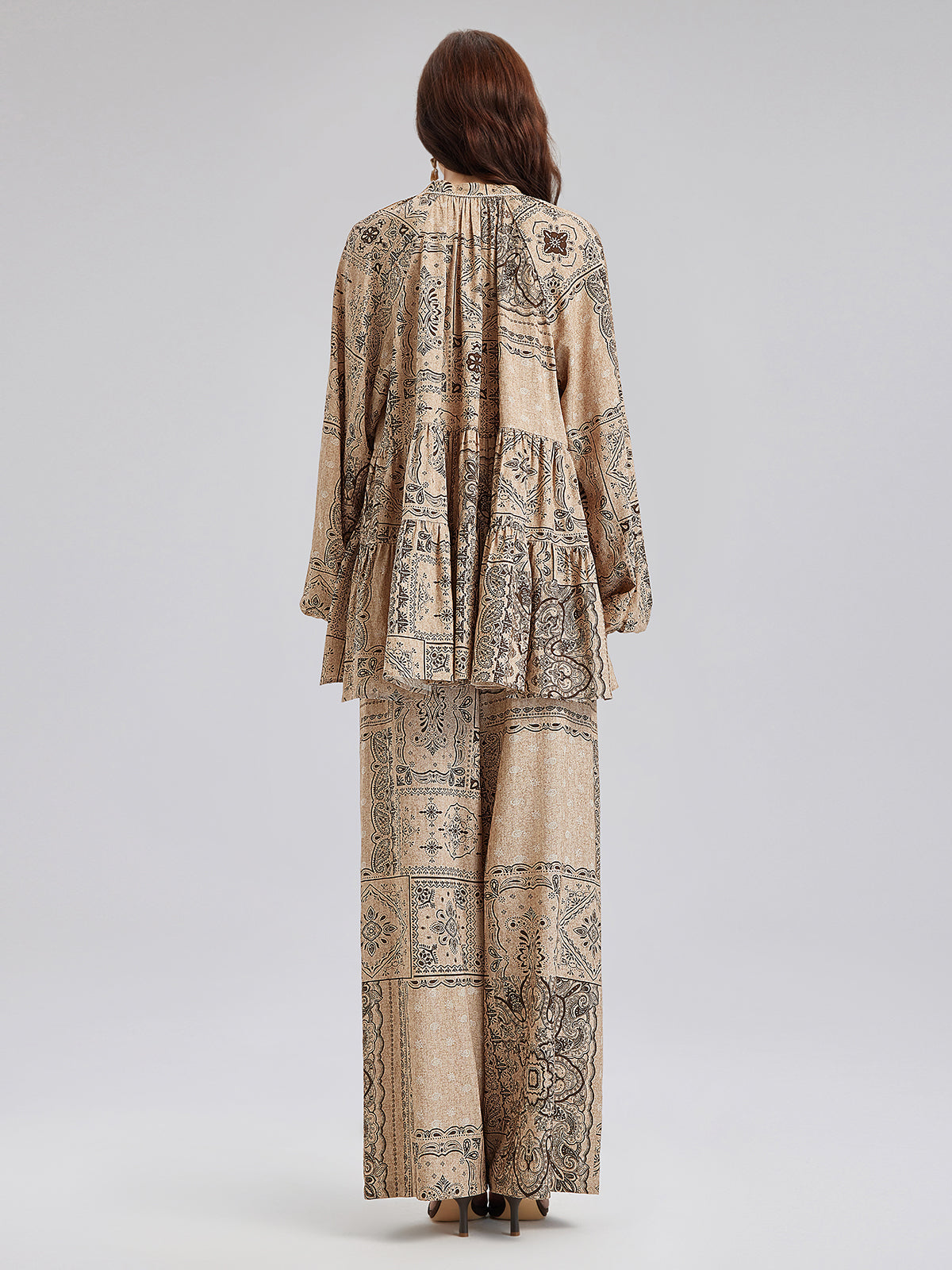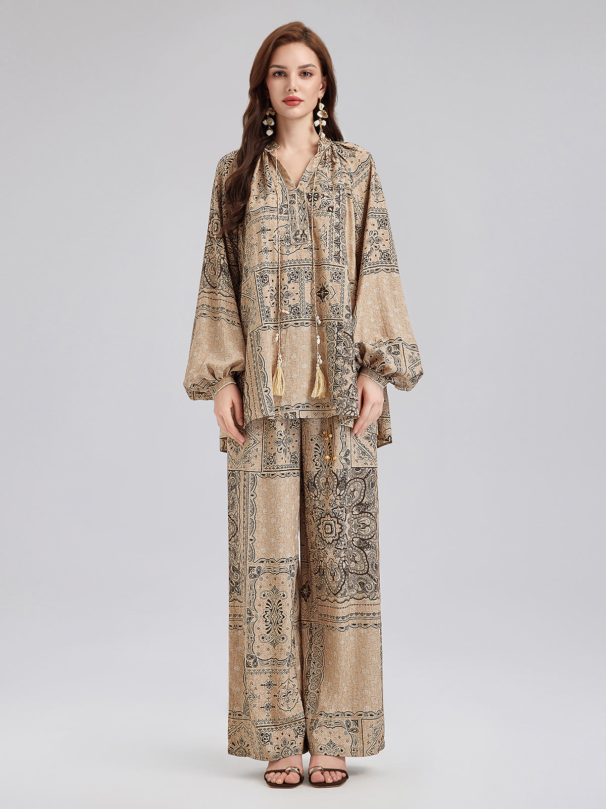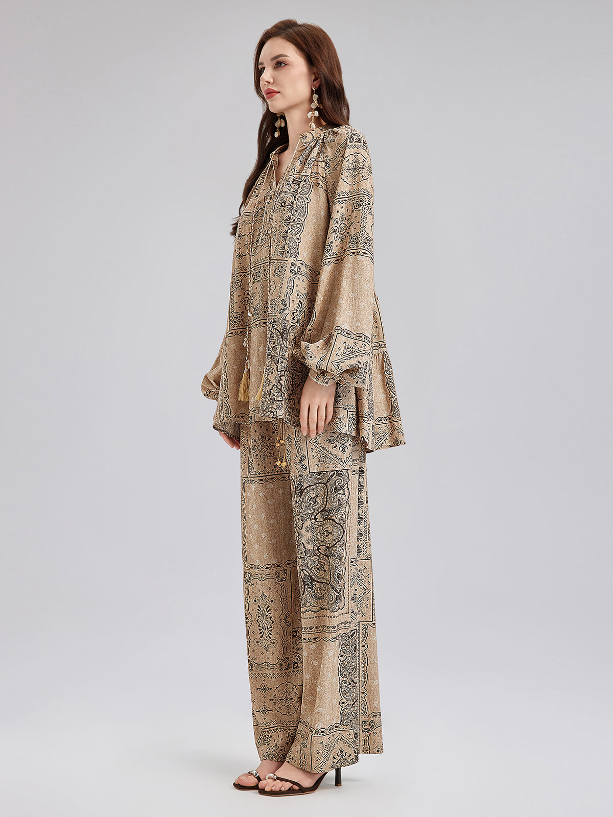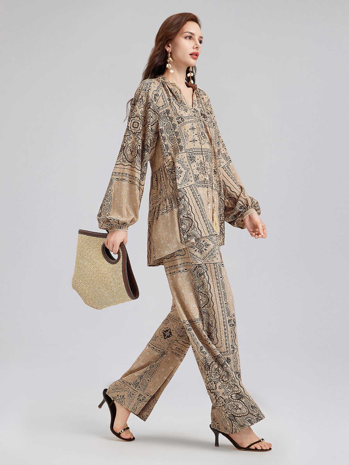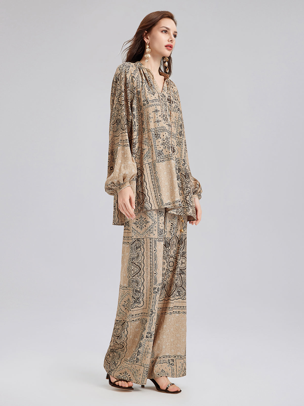 Paisley Print Vacation Wide-Leg Pants with Belt