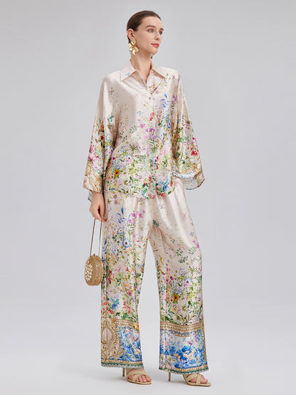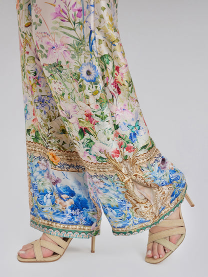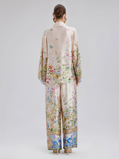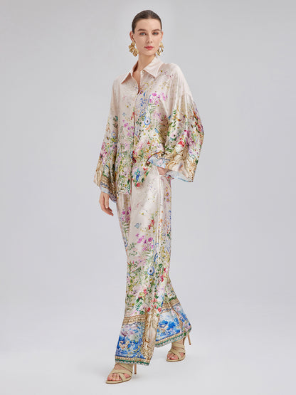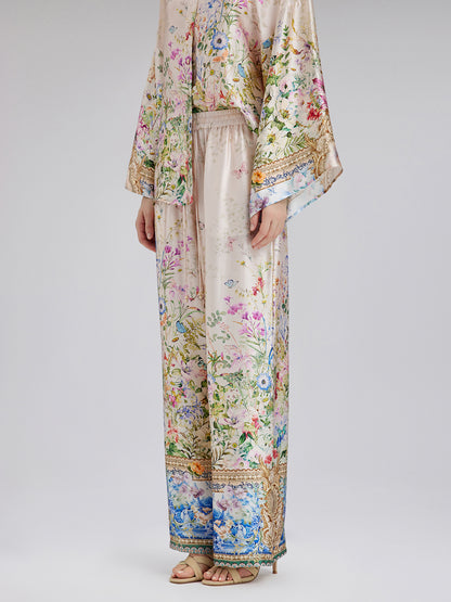 Silk Satin Floral Print Pants (100% Silk)