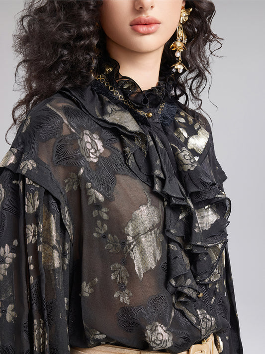 Court-Style Ruffled Silk Blouse
