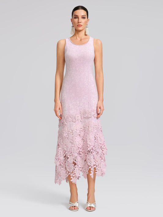 Beaded Lace Knit Slip Dress