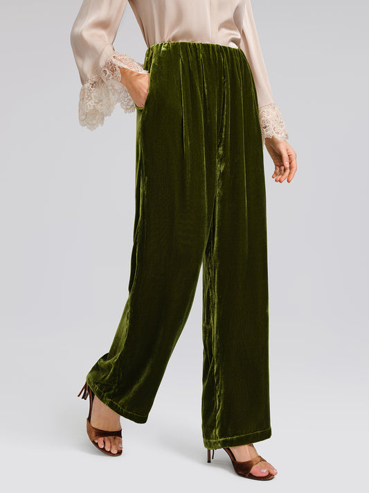 Silk Velvet Elastic-Waist Wide-Leg Pants