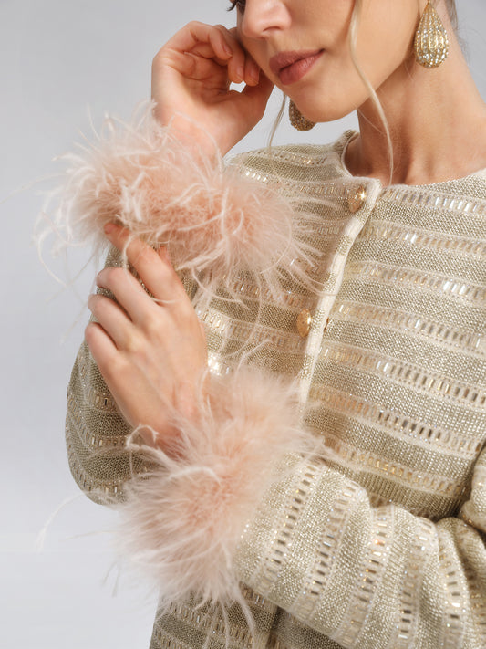 Crystal-Embellished Feather-Trim Jacket