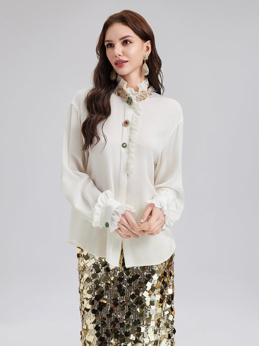 Luxurious Embroidered Sequin Long-Sleeve Top