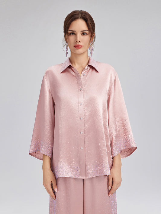 Crystal-Embellished Three-Quarter Sleeve Shirt