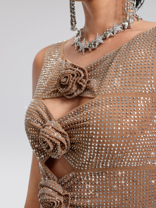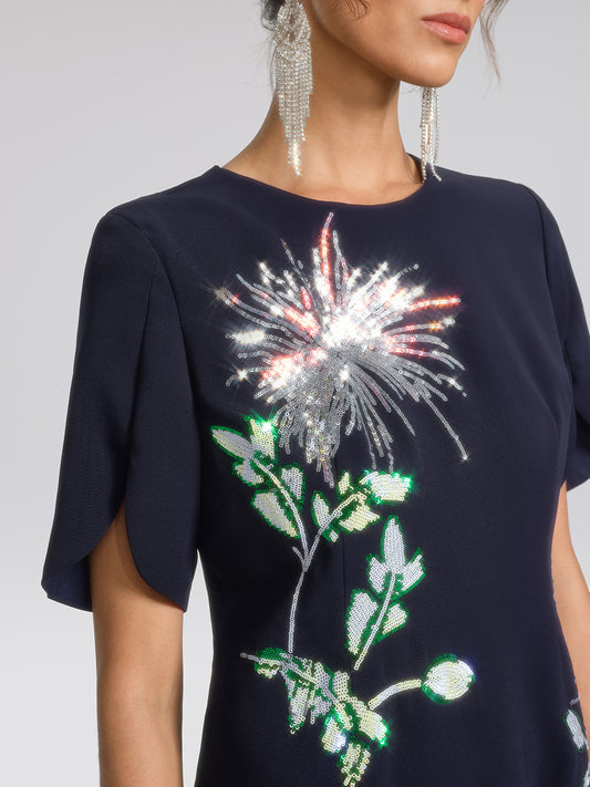 Floral Embroidery Hand-Beaded Dress (Belt Not Included)