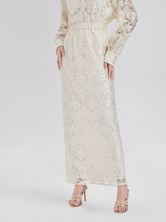 Sequin Trimmed French Mesh-Hem Design Skirt